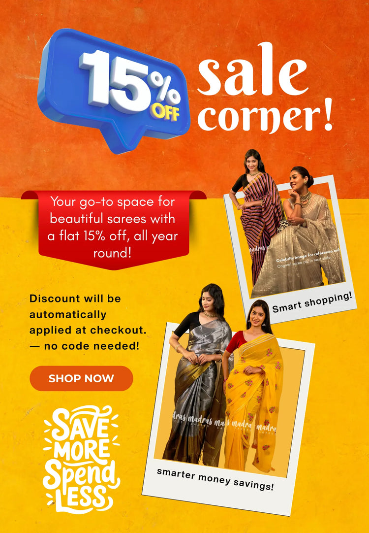 If you are looking to buy Indian Sarees online, we are here for you. Welcome to Madras Sarees where our motto is to take your look to new levels of beauty. We offer a range of sarees to suit all occasions so that you look best everywhere. You can find our collection of cotton sarees, linen sarees, banarasi sarees, office wear sarees, and silk sarees online at prices you won’t believe.