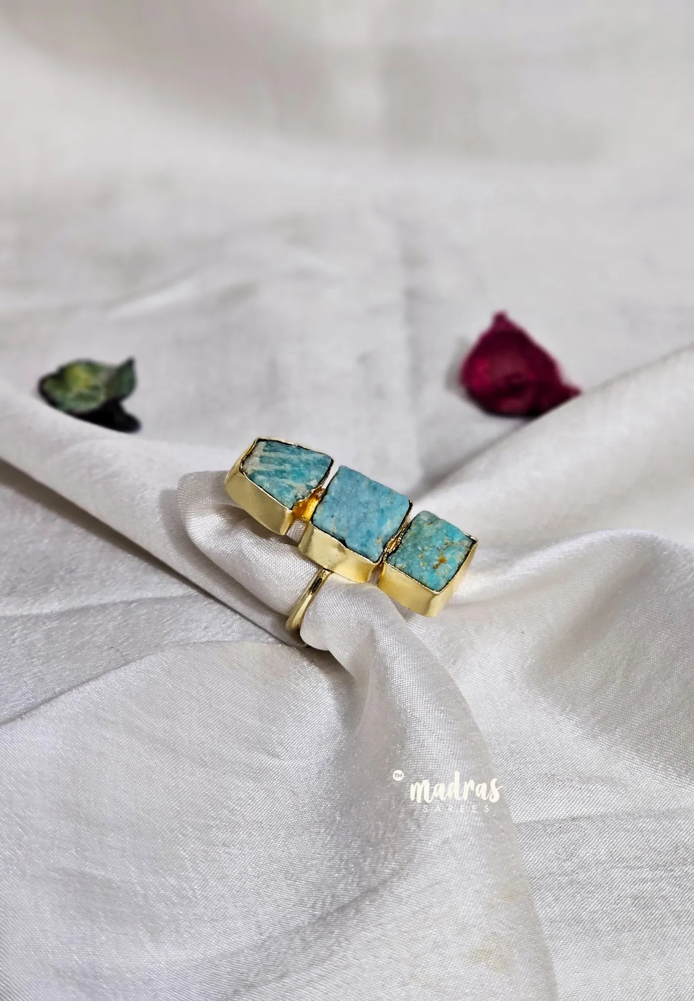 Amazonite Green Raw Stone Handmade Imported Contemporary Stack Adjustable Ring