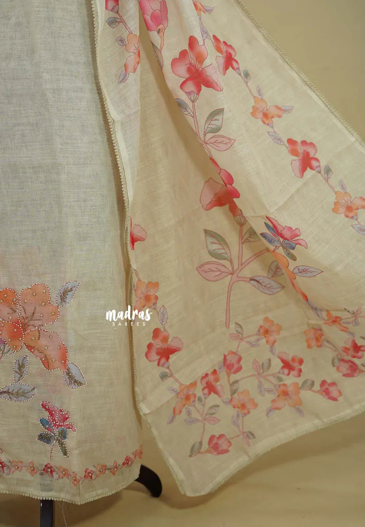 ✨ Dupatta: Linen with Floral Prints (2.4 m approx.)