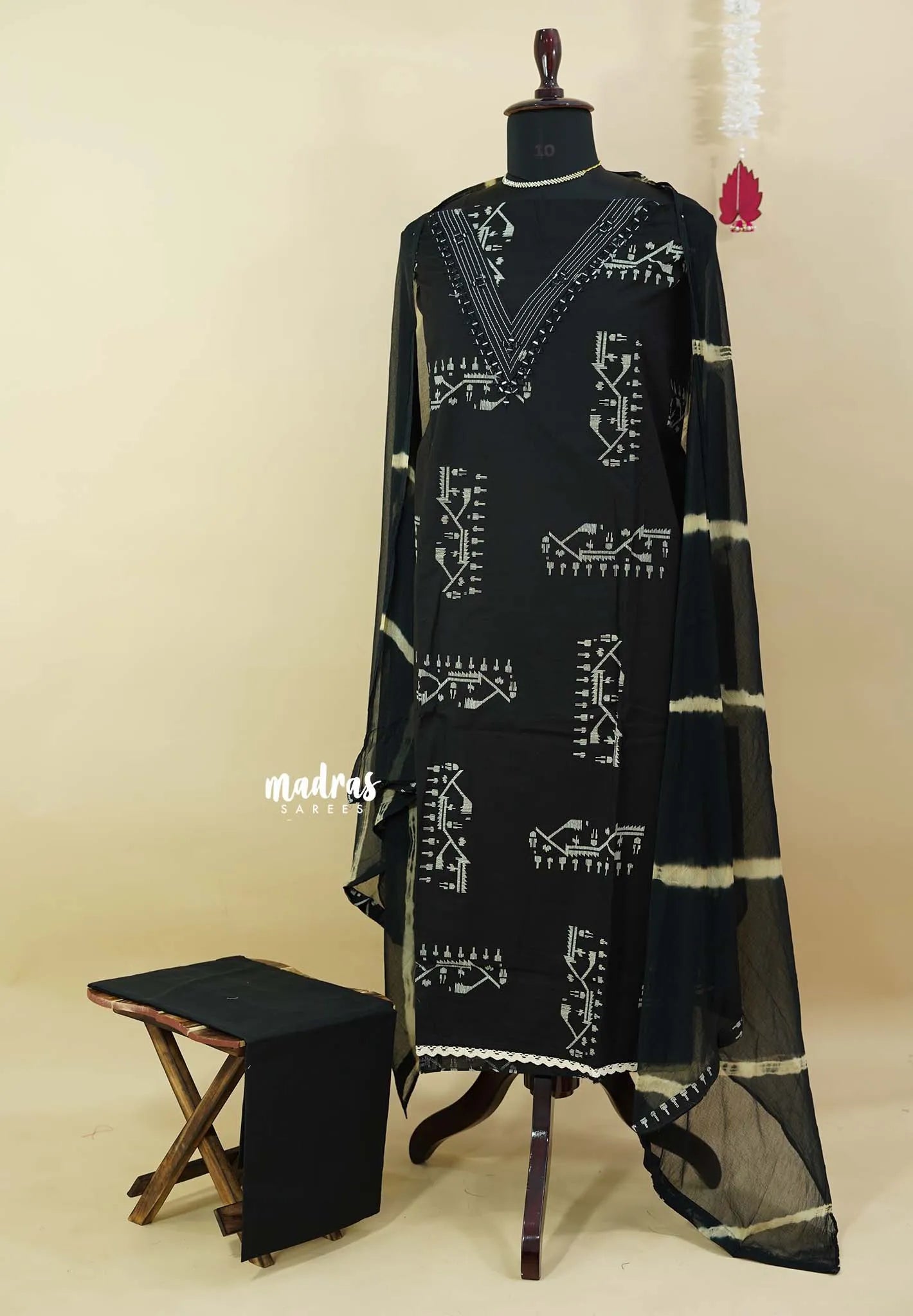 Crafted from pure handspun cotton, this unstitched salwar suit brings together comfort and heritage charm. Featuring intricate woven detailing with patterns and a beautifully coordinated dupatta, this suit is breathable, soft on skin, and perfect for everyday elegance. Pre-washed for extra comfort, it drapes gracefully while keeping its natural texture intact.