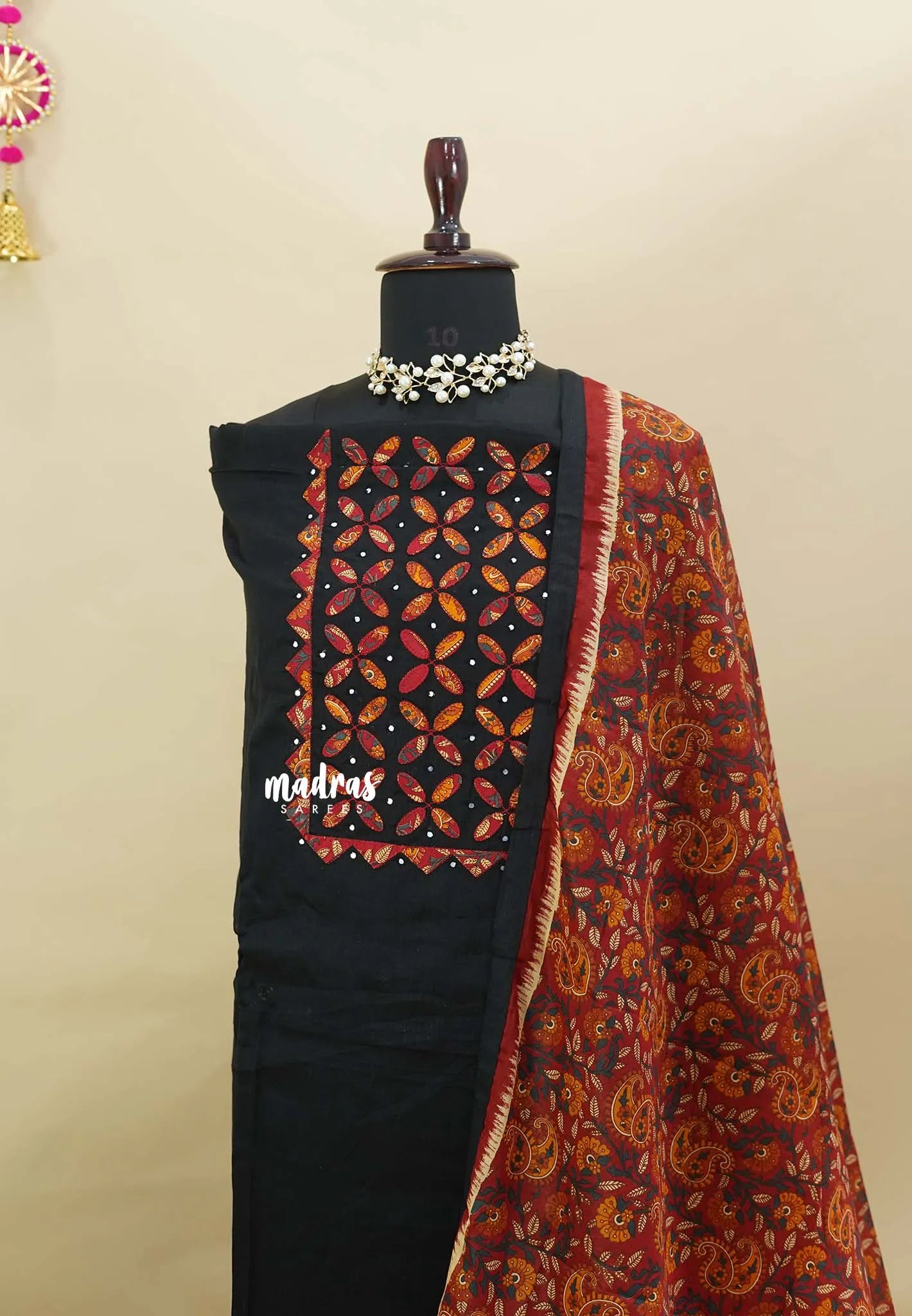 Crafted from pure handspun cotton, this unstitched salwar suit brings together comfort and heritage charm. Featuring intricate woven detailing with contrast patterns and a beautifully coordinated dupatta, this suit is breathable, soft on skin, and perfect for everyday elegance. Pre-washed for extra comfort, it drapes gracefully while keeping its natural texture intact.