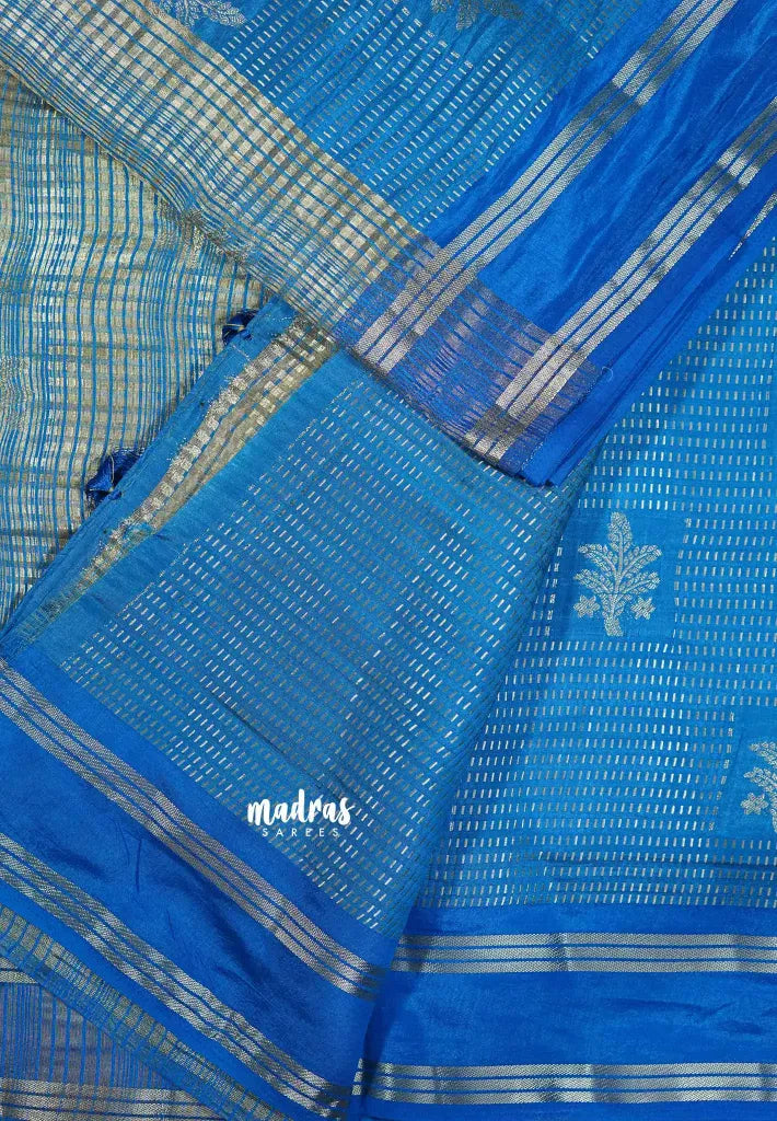 Ananda Blue - Raaga premium semi tussar with rettapet border full silver weaving boday