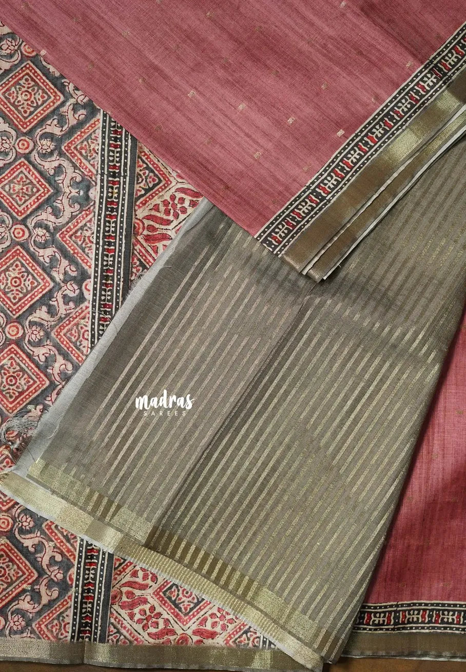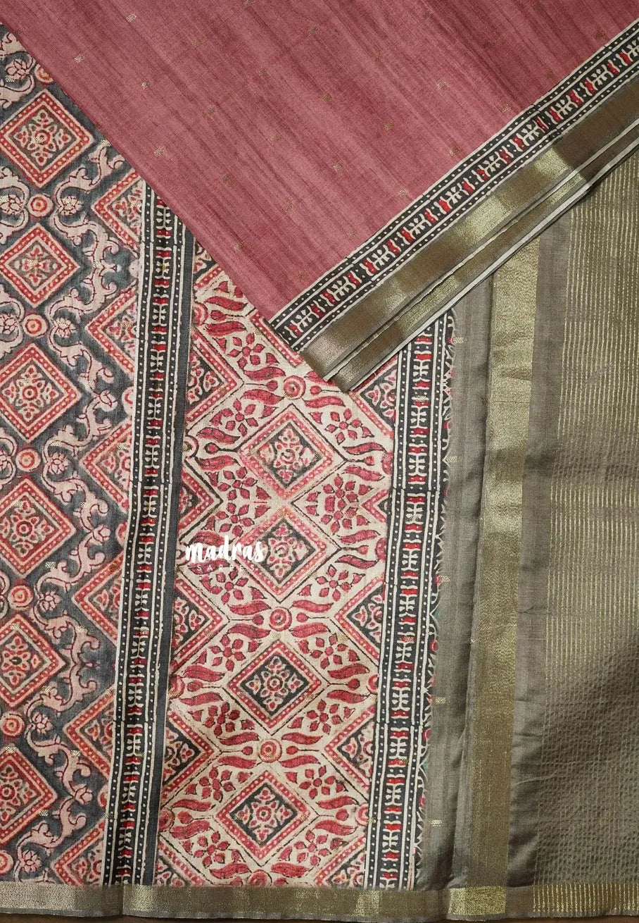 Antique Rose - Rukmani - Premium Tussar Silk with Zari Buttas Rich pallu and blouse - Perfect for tea party