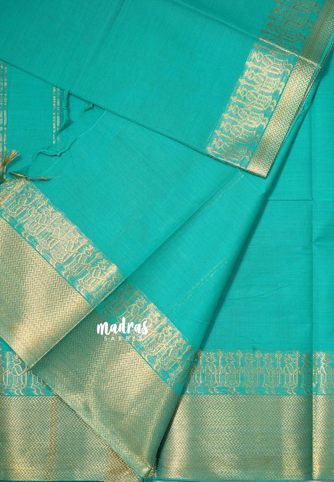 Aqua Green - Karthigai silk cotton plain body getti border - Best for Small Functions