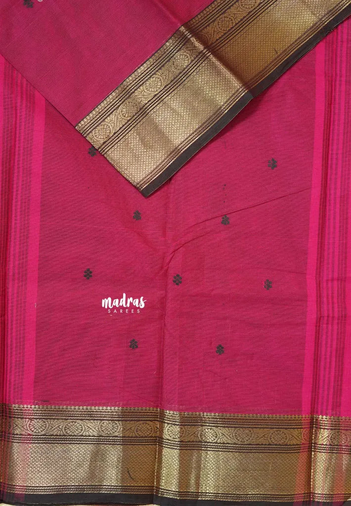Beet Pink - Karthigai silk cotton Bavanji border with buttas