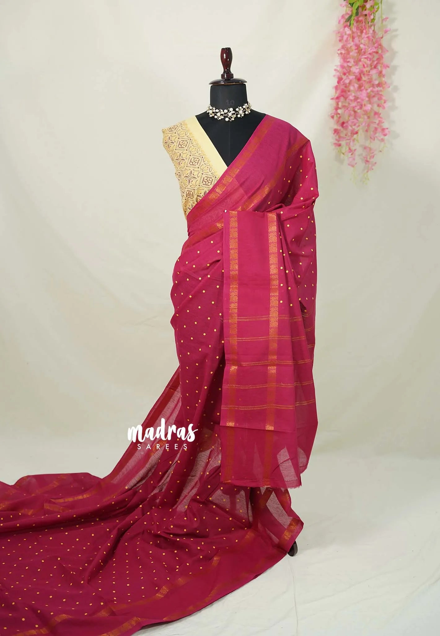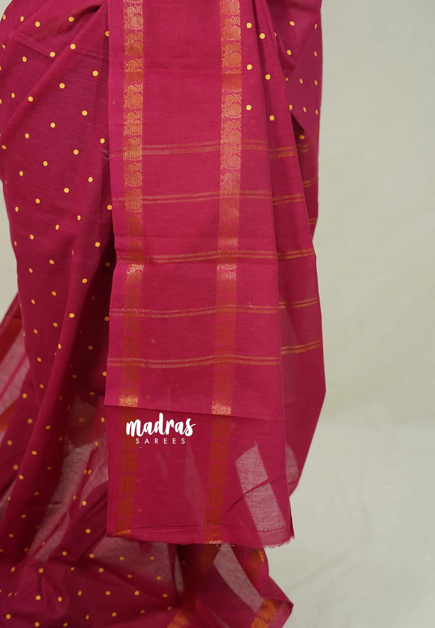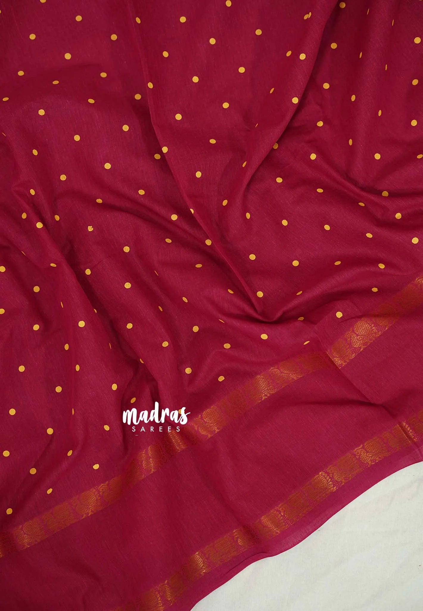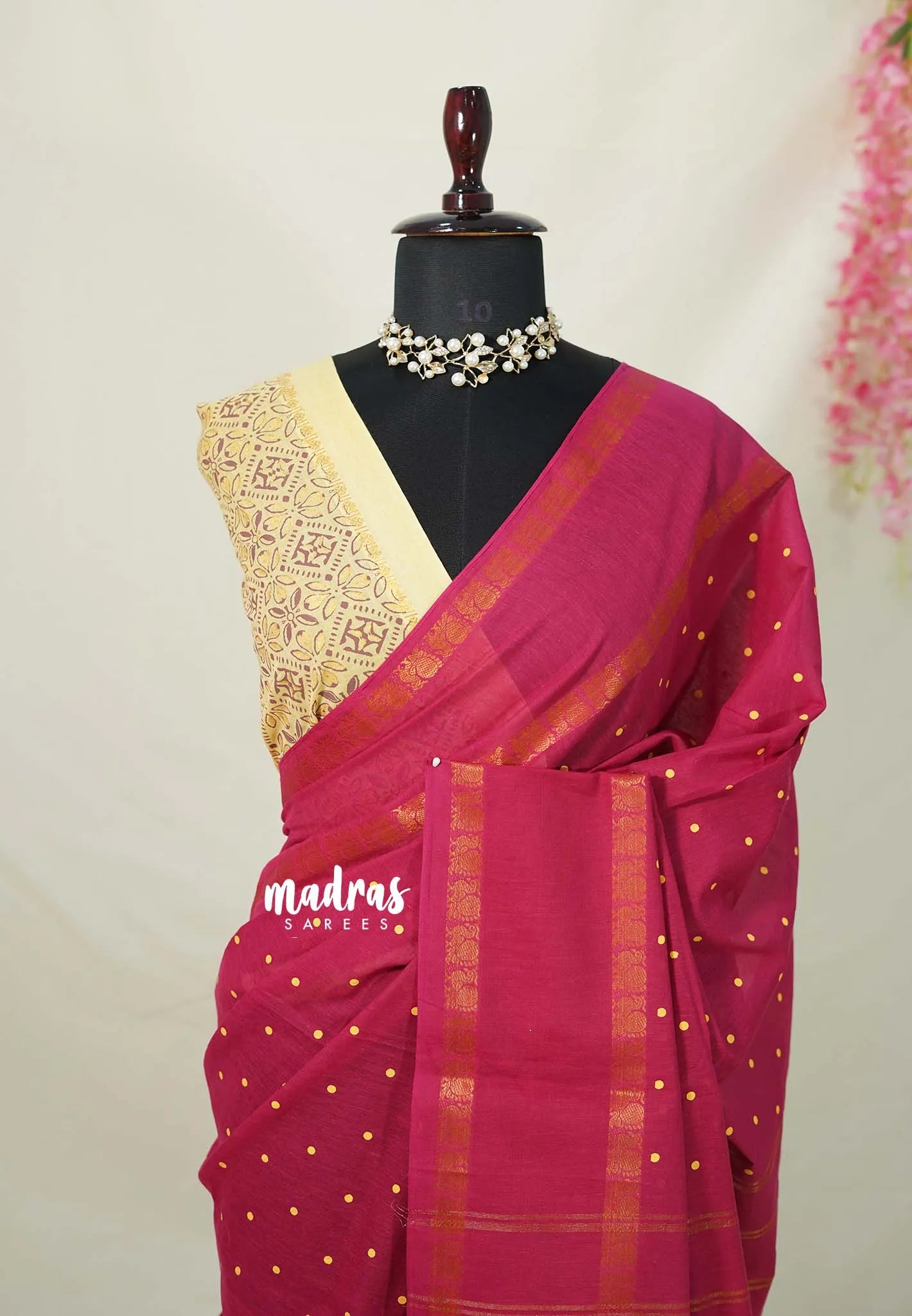 Presenting a 100 thread count Subbulakshmi Sungudi saree, an exclusive design thoughtfully created only by Madras Sarees. This unique creation reflects our passion for bringing fresh ideas into traditional weaving while preserving the authentic charm of Sungudi.