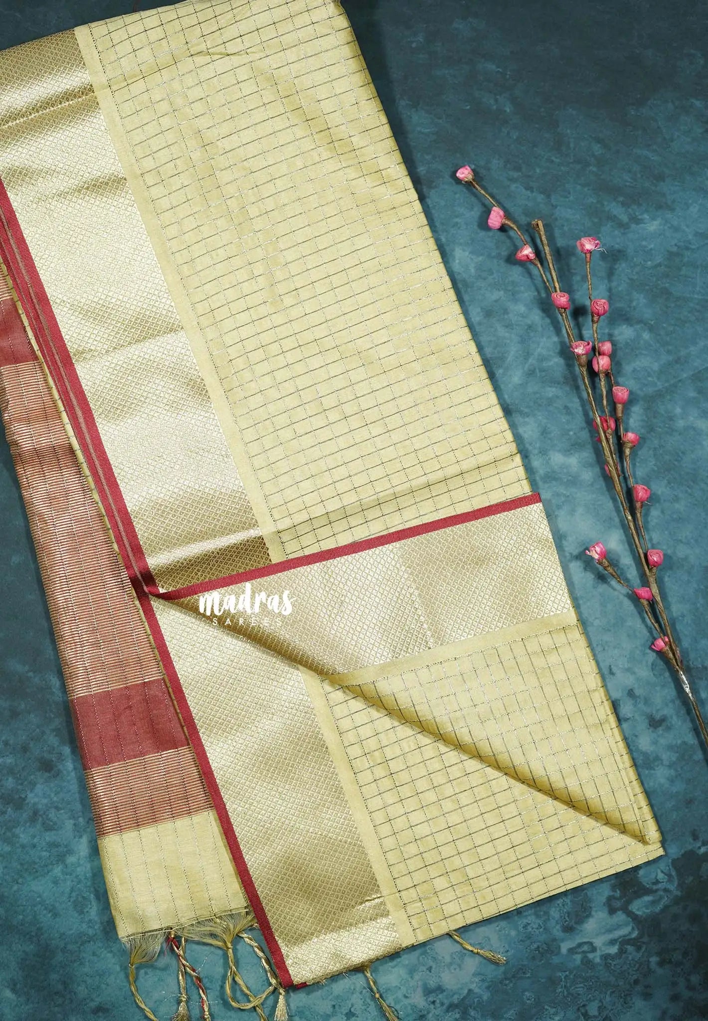 Fabric: Made from luxurious semi-raw silk, offering a smooth and rich texture.