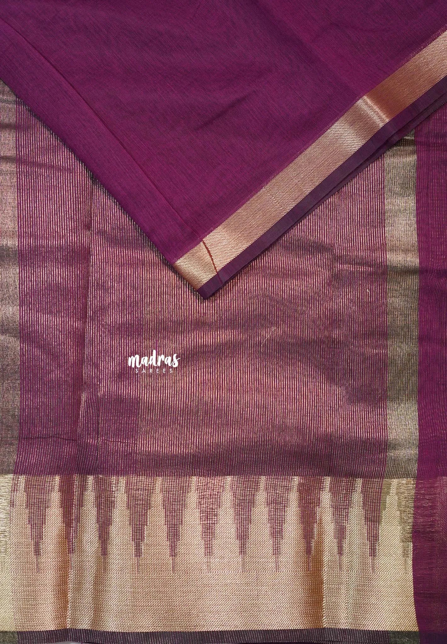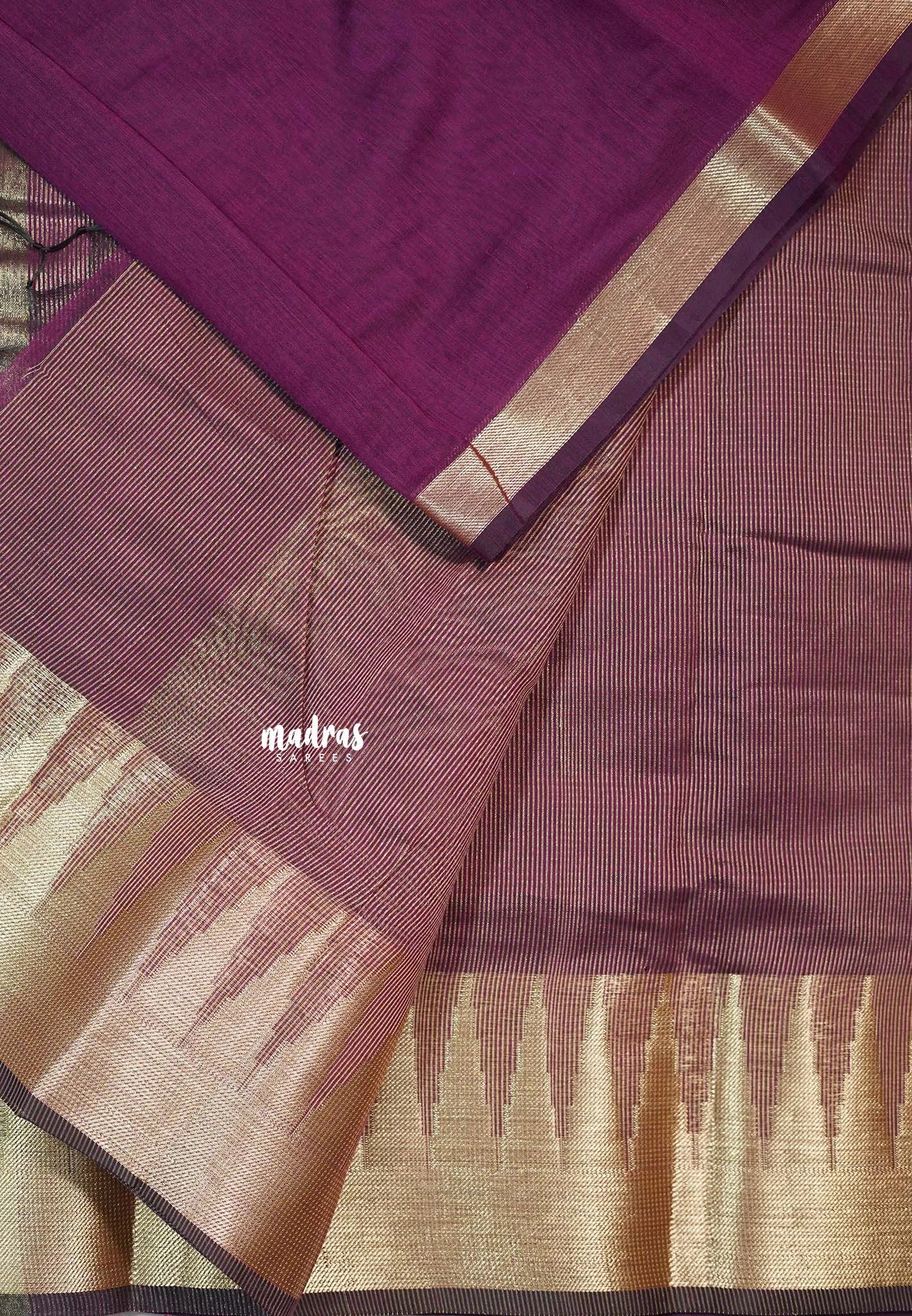 Berry Bliss Purple - Maheswari - Lightweight cotton silk saree with temple border  - Perfect for Small Functions