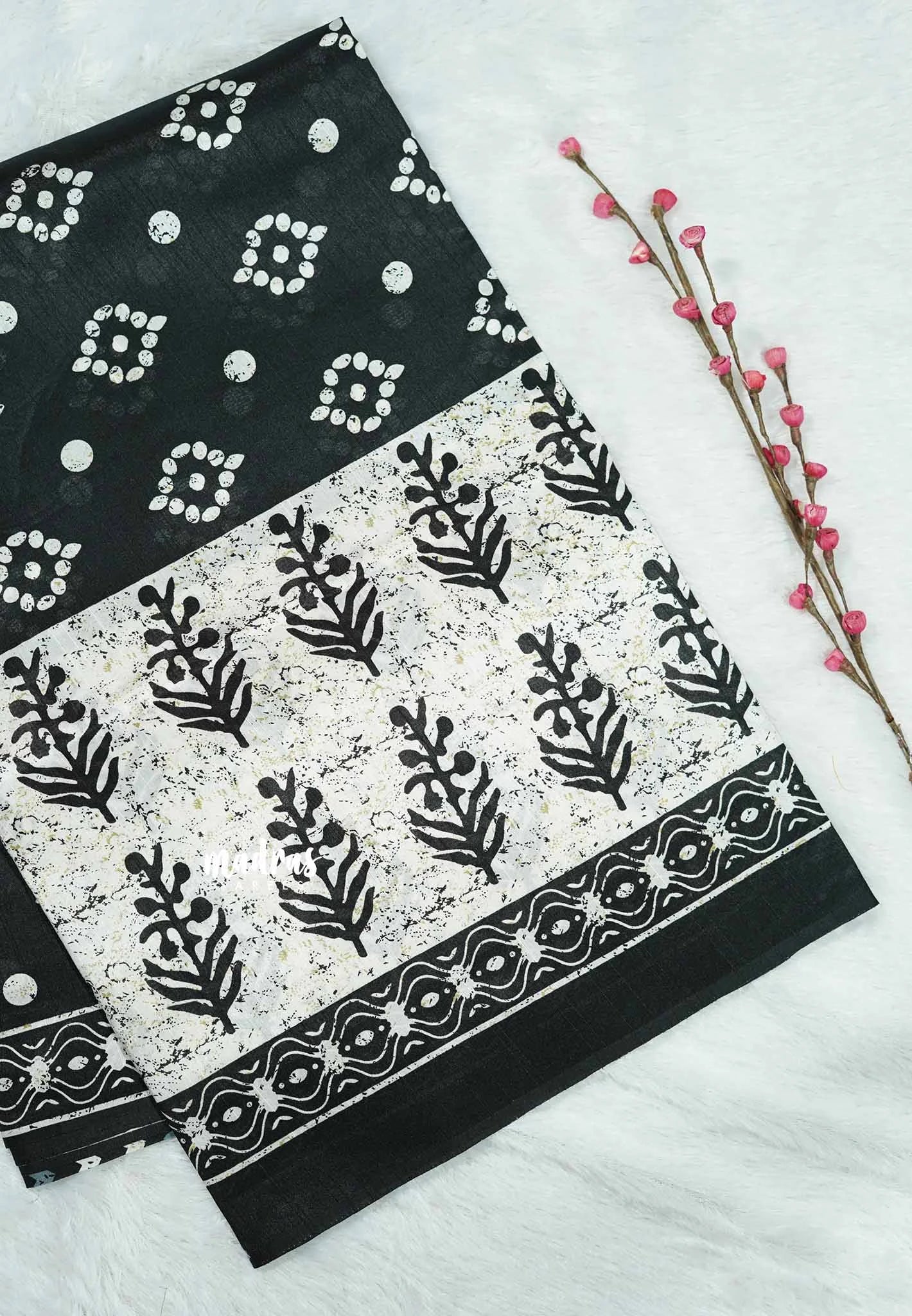 Black and bigborder white - Zara Malgudi Fusion printed silk