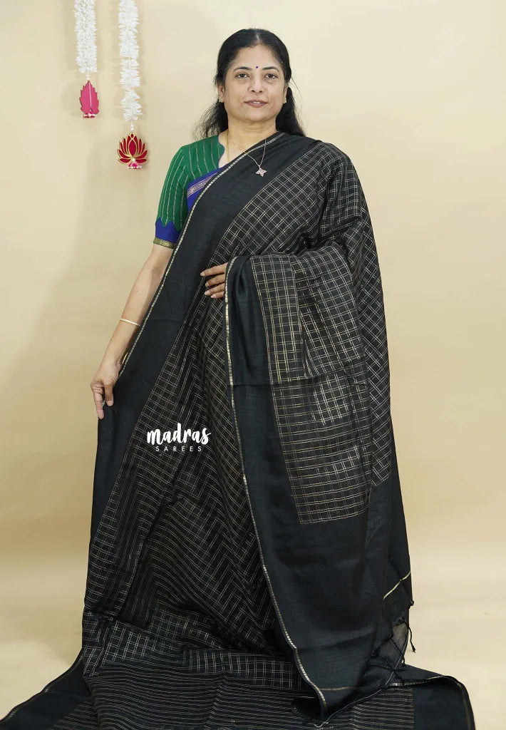 A graceful blend of Jute and Tussar silk, this saree beautifully combines the earthy texture of jute with the subtle sheen of tussar. The fabric drapes effortlessly, offering both comfort and sophistication — perfect for festive and traditional occasions alike..