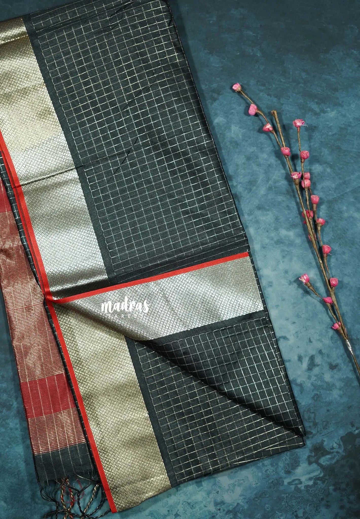 Mystery Black - Manjari -  semi tussar checks in body with tissue border
