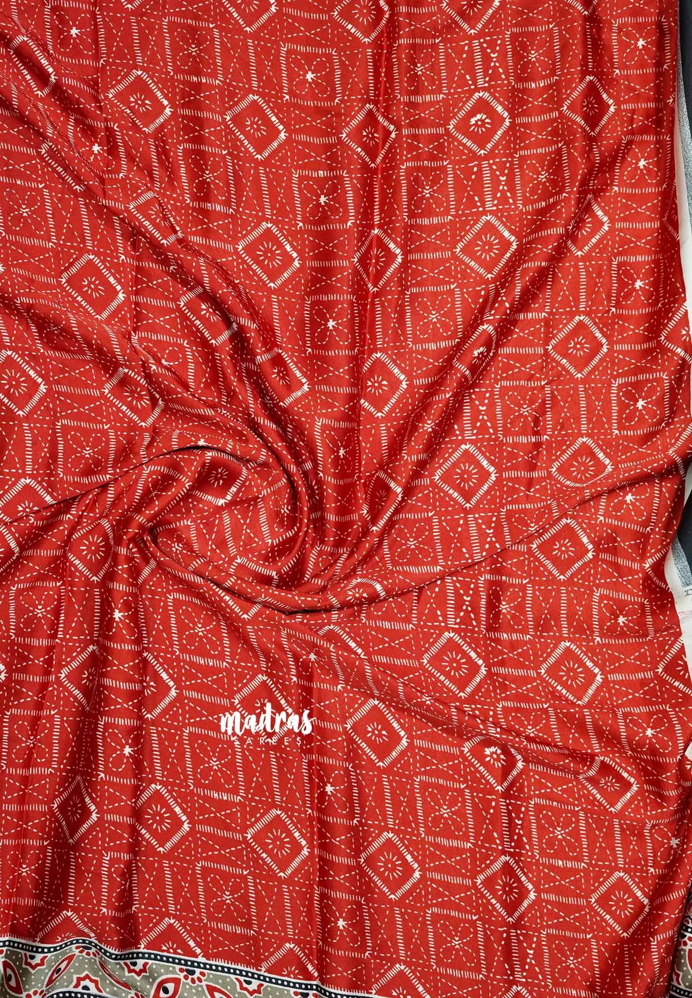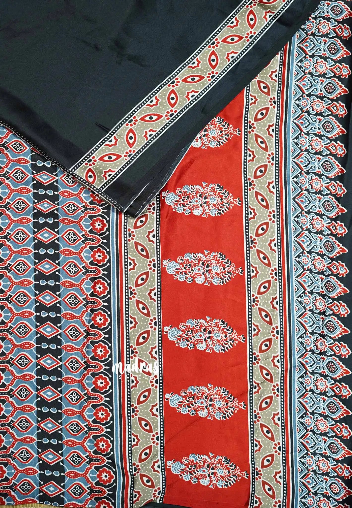 The modal silk saree fabric is buttery smooth and drapes really well on the body.