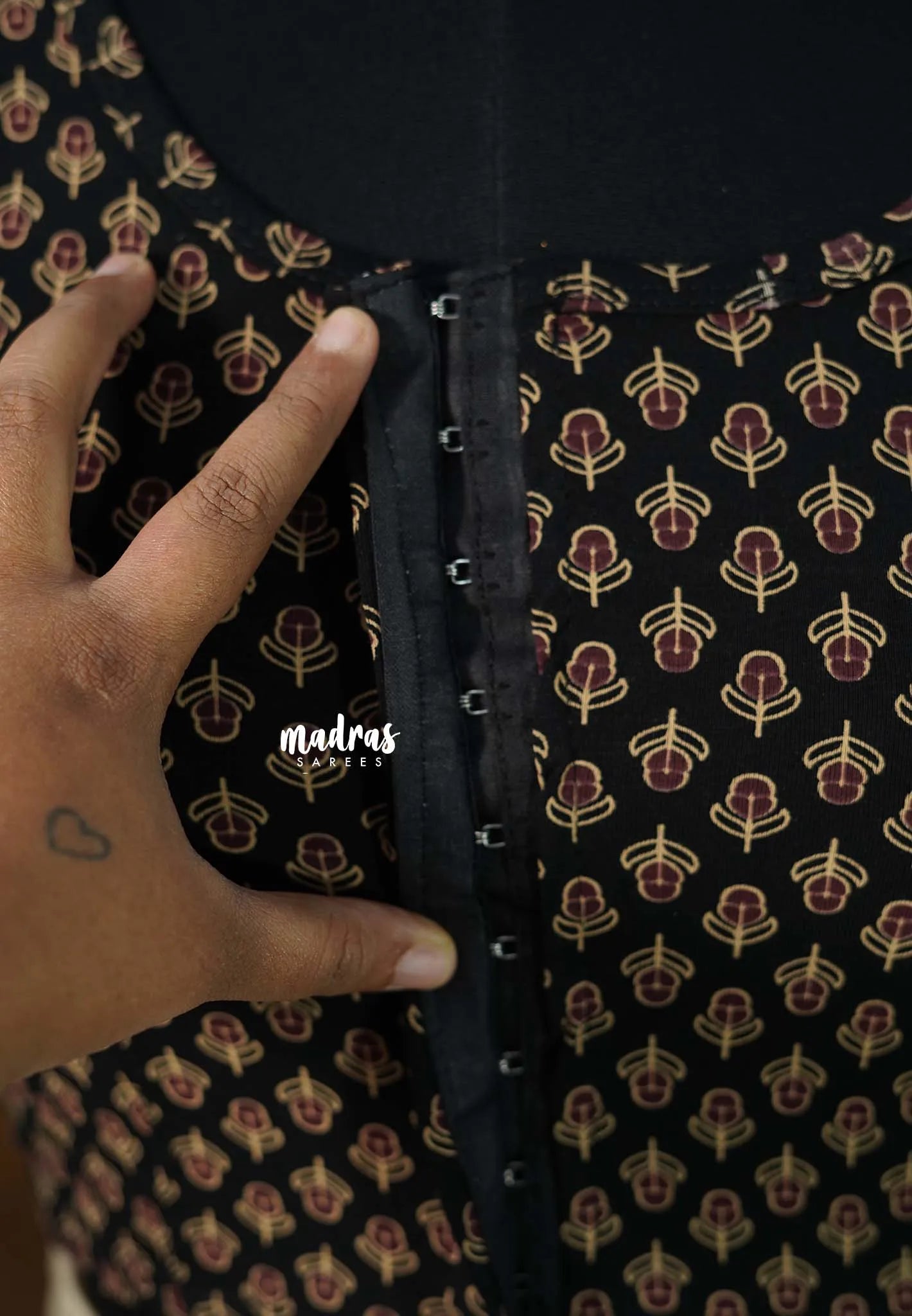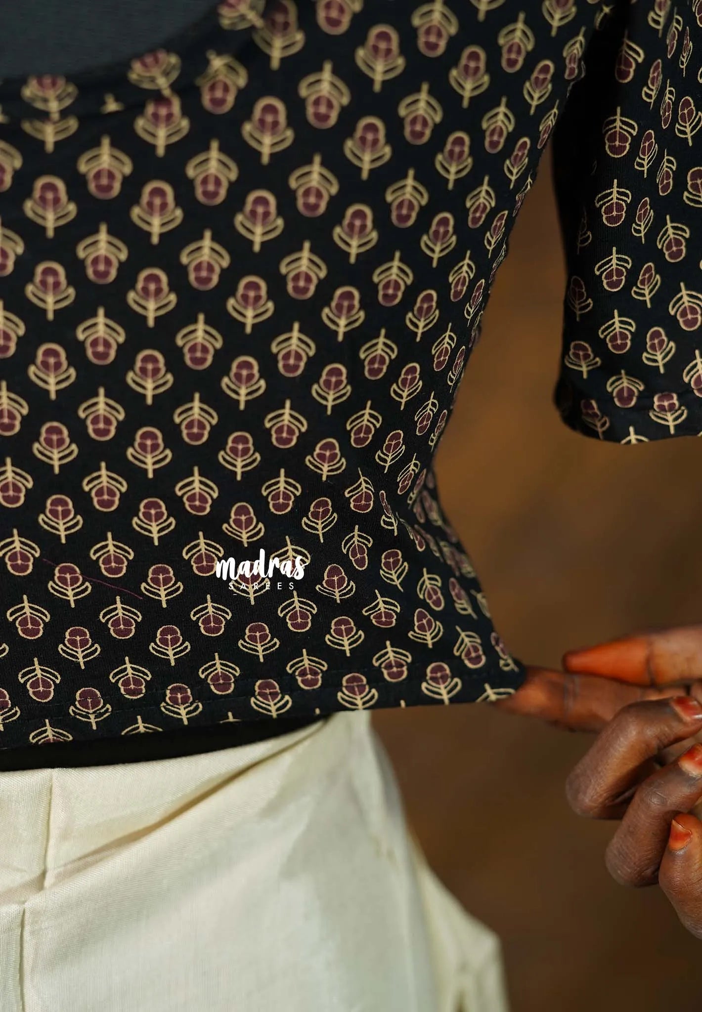 Black with small flowers - Stretchable Fabric = Stress-Free Fit ✨ Lycra Cotton Readymade Kalamkari printed Blouse – Perfect Fit Comfort