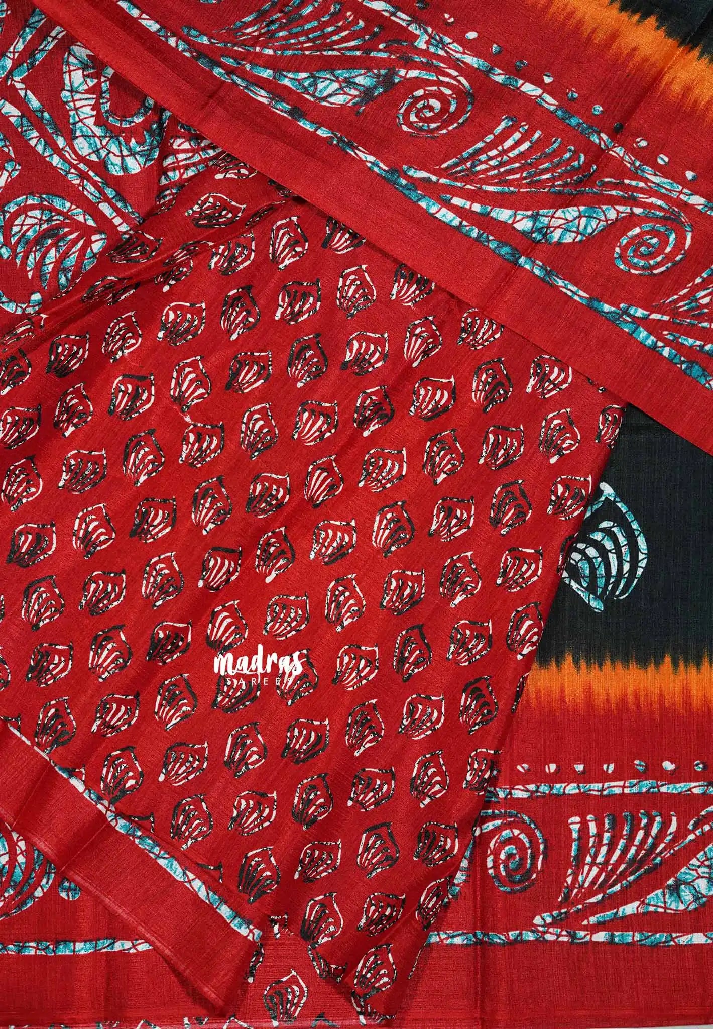 Black - Uniform sarees Malgudi printed silk with batik prints