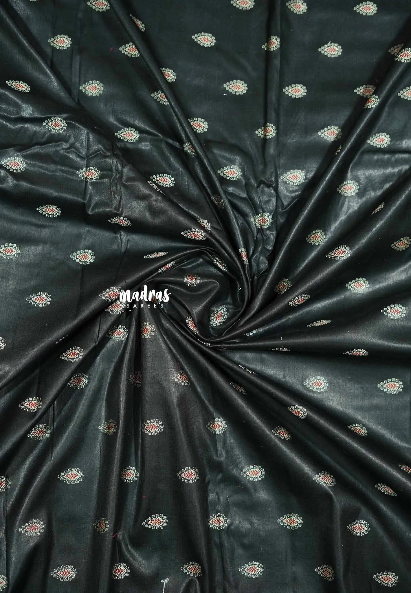 Black - Unisex Banarasi Silk Cotton thilagam buttas Fabric – For Men's Kurta, Blouse, Kurti, A-Line Frocks