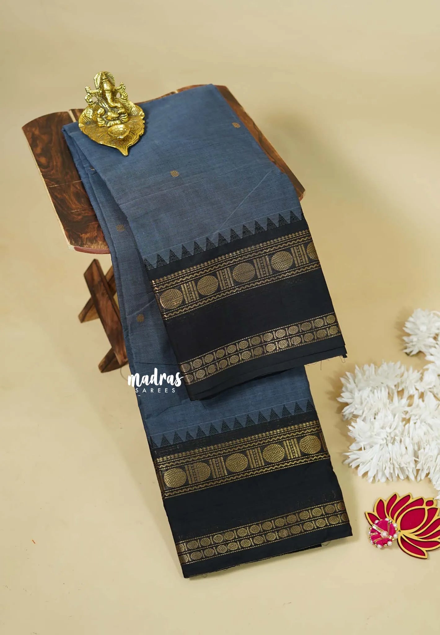 Bluish Grey - Karthigai Silk Cotton Rettapet rudraksham border