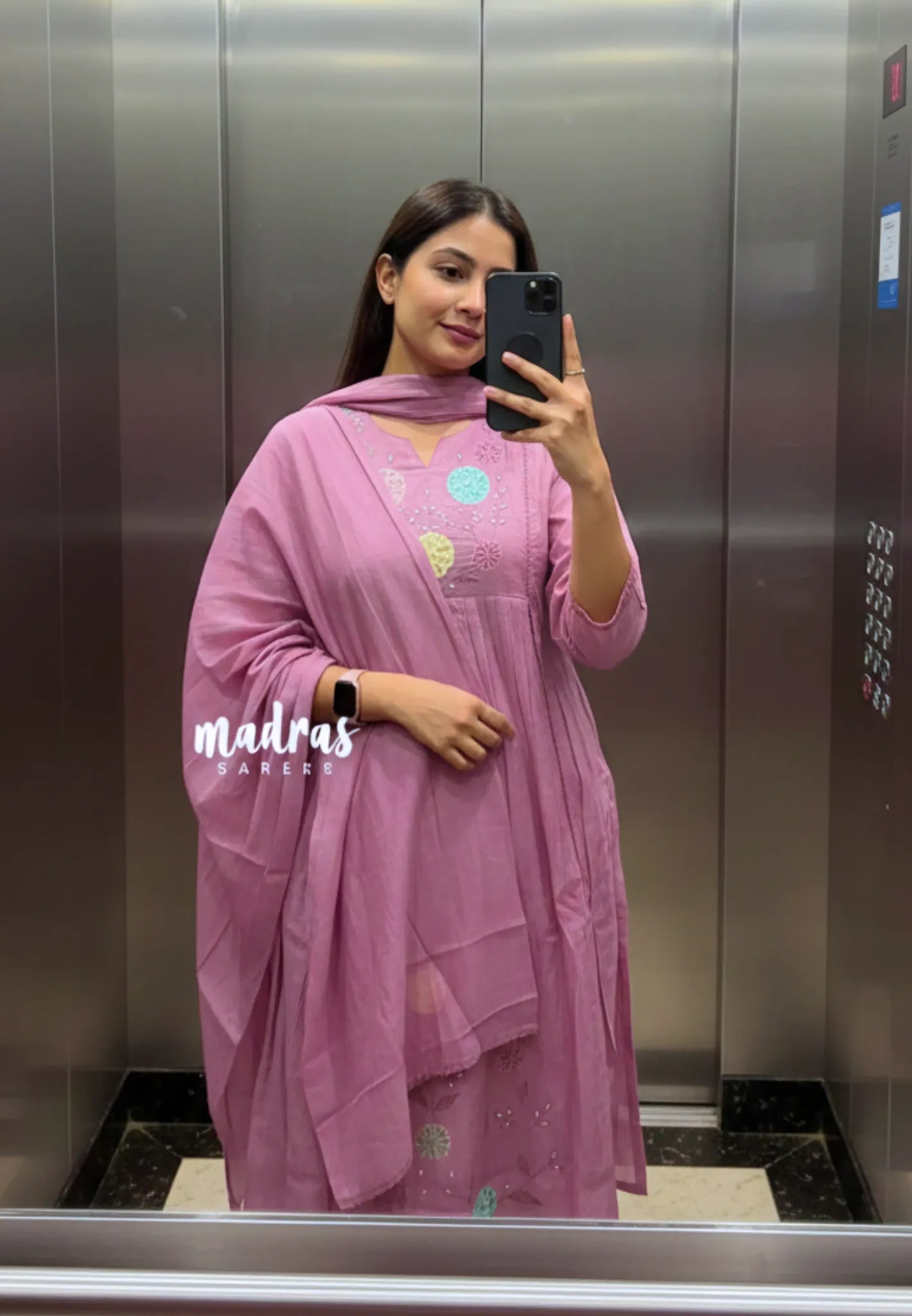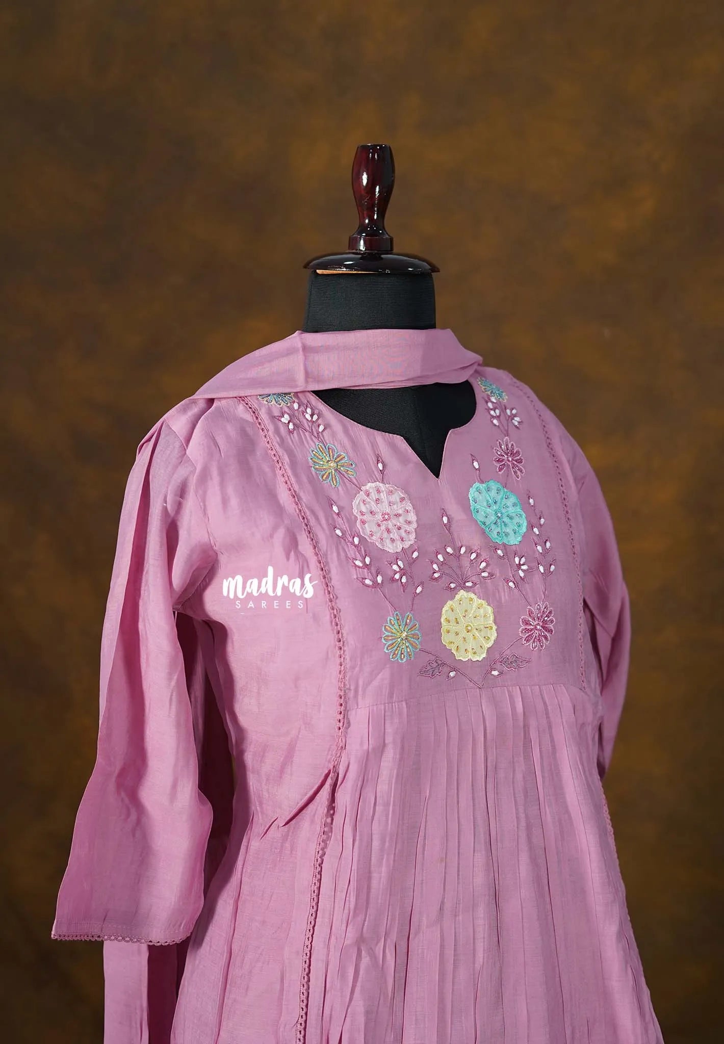Blush pink - Aavani - Mul Chanderi Delicate multicolor embroidery Kurta Set with Dupatta - Best for Festive gatherings