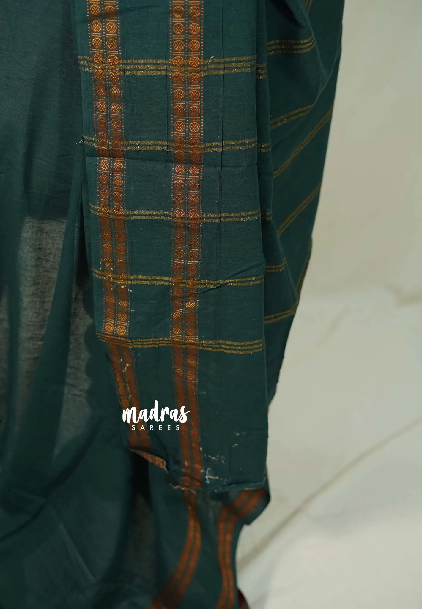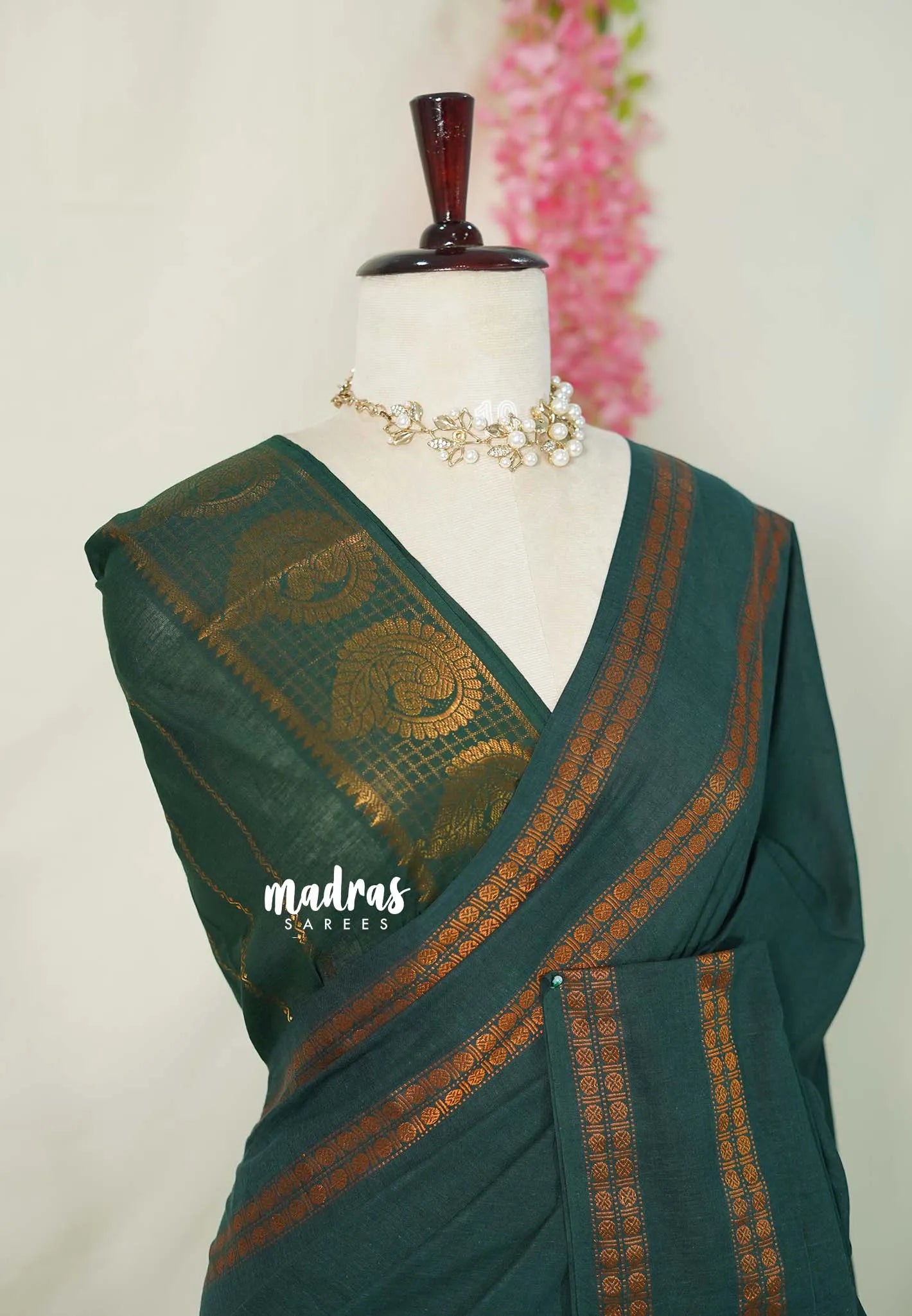 Rooted in heritage craftsmanship, this saree brings together simplicity and sophistication, making it a versatile choice for everyday elegance as well as meaningful occasions. The neat finishing and refined weave highlight the care and attention given to every detail.