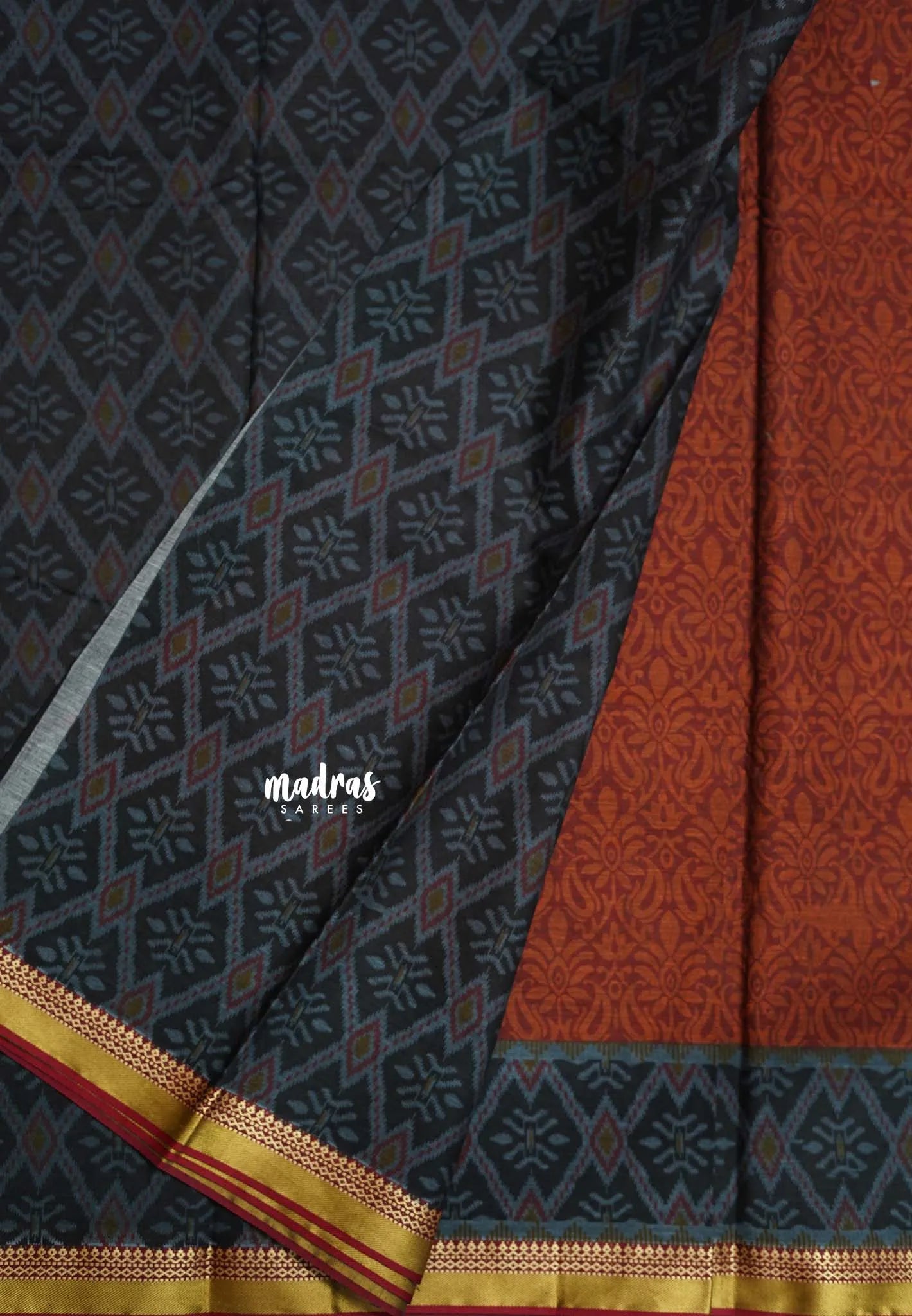 Brick Brown - Kalanjali Soft chanderi silk with Bagru Floral Prints - Best for Office Wear