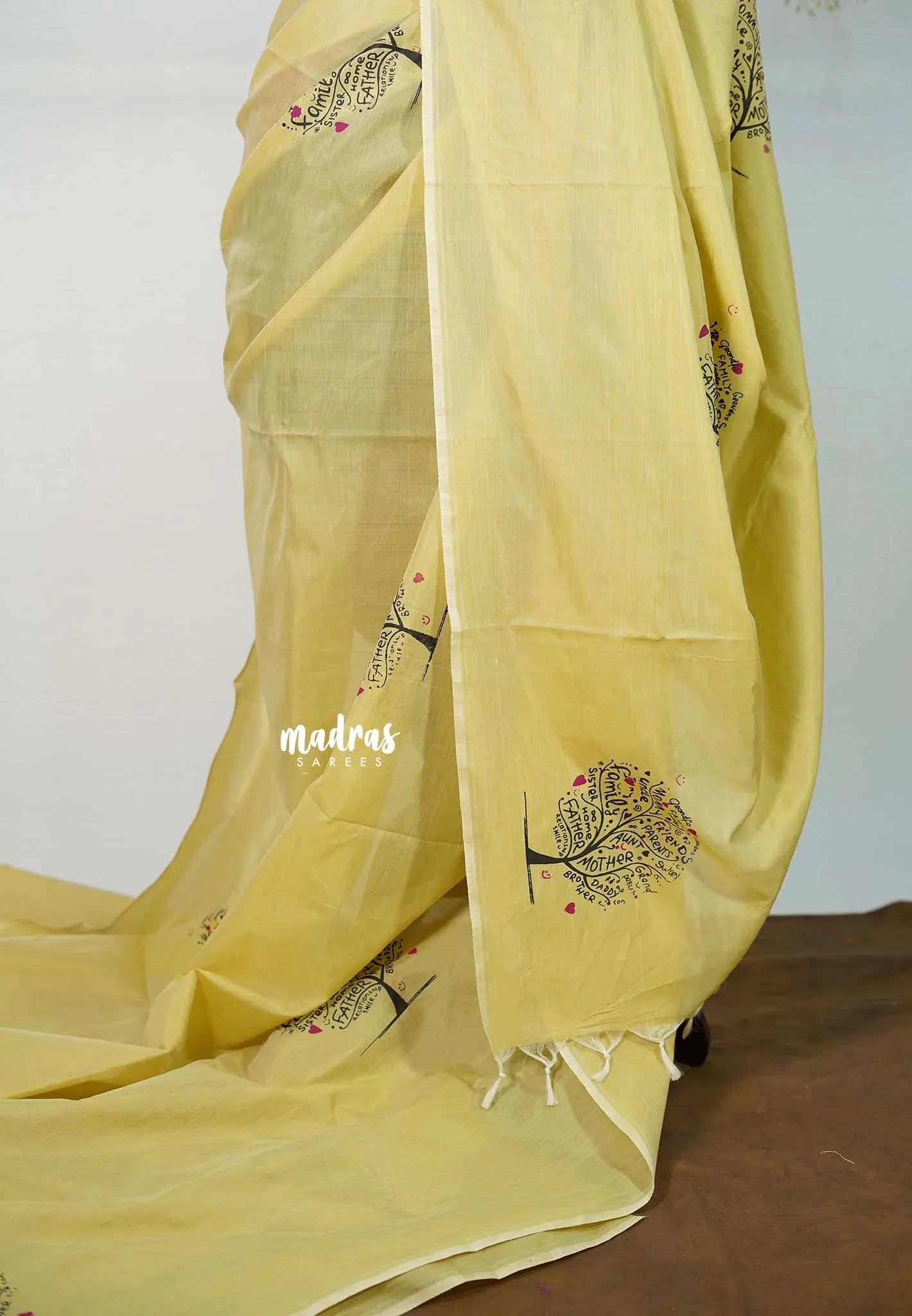 🌸 Romance in Every Fold – Light up Valentine's Day with this **butter yellow organic bamboo cotton saree**, handblocked by artisans. Ultra-breathable bamboo fabric drapes like silk but feels cooler than cotton – perfect for candlelight dinners, proposal moments, and romantic getaways. **Combo blouse fabric included FREE** (₹600 value).