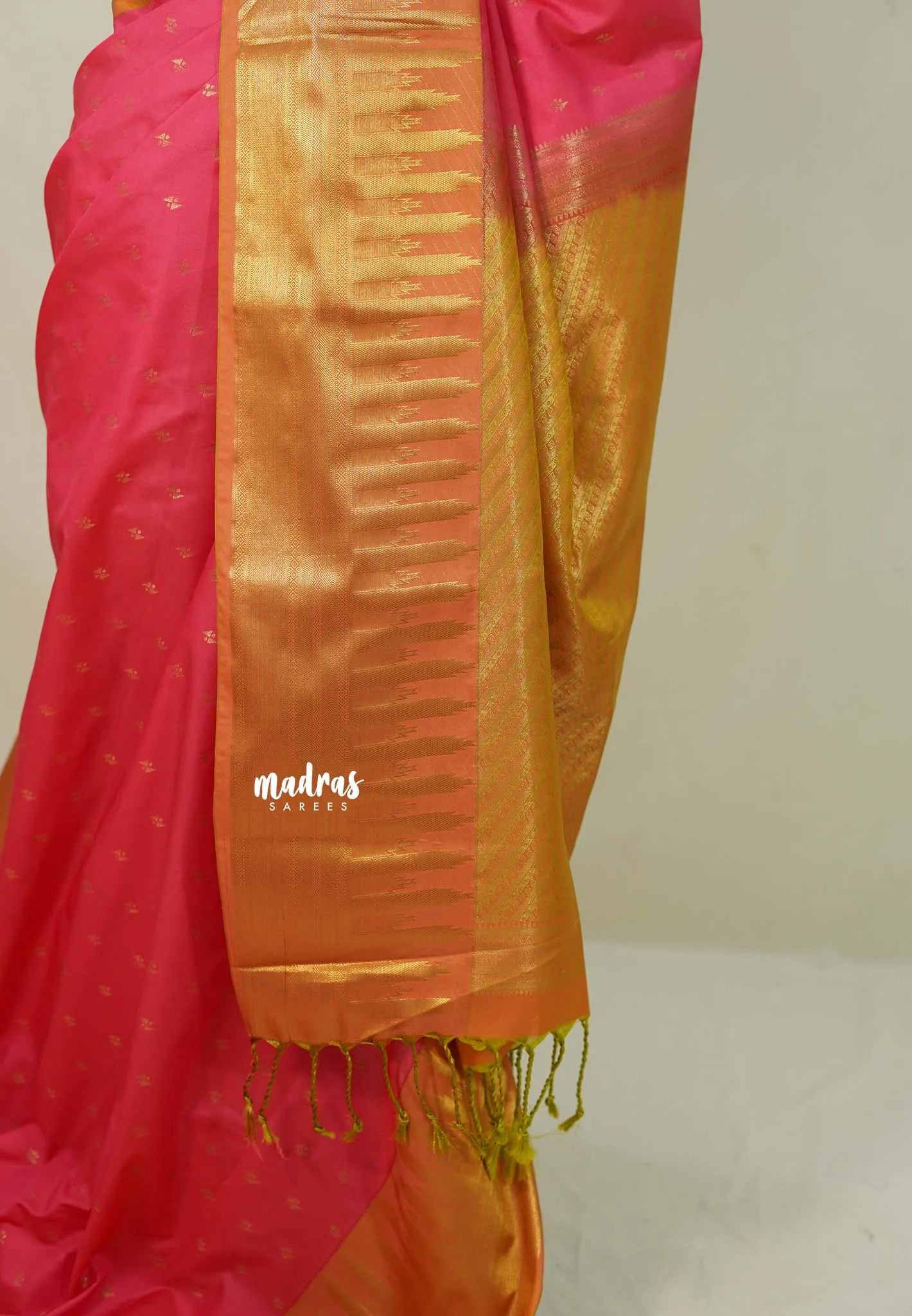Candy Peach Pink - Sowbhagya Gift silk – Soft Silk Elegance Saree with Traditional Border and Buttas - Perfect for Festive Celebration