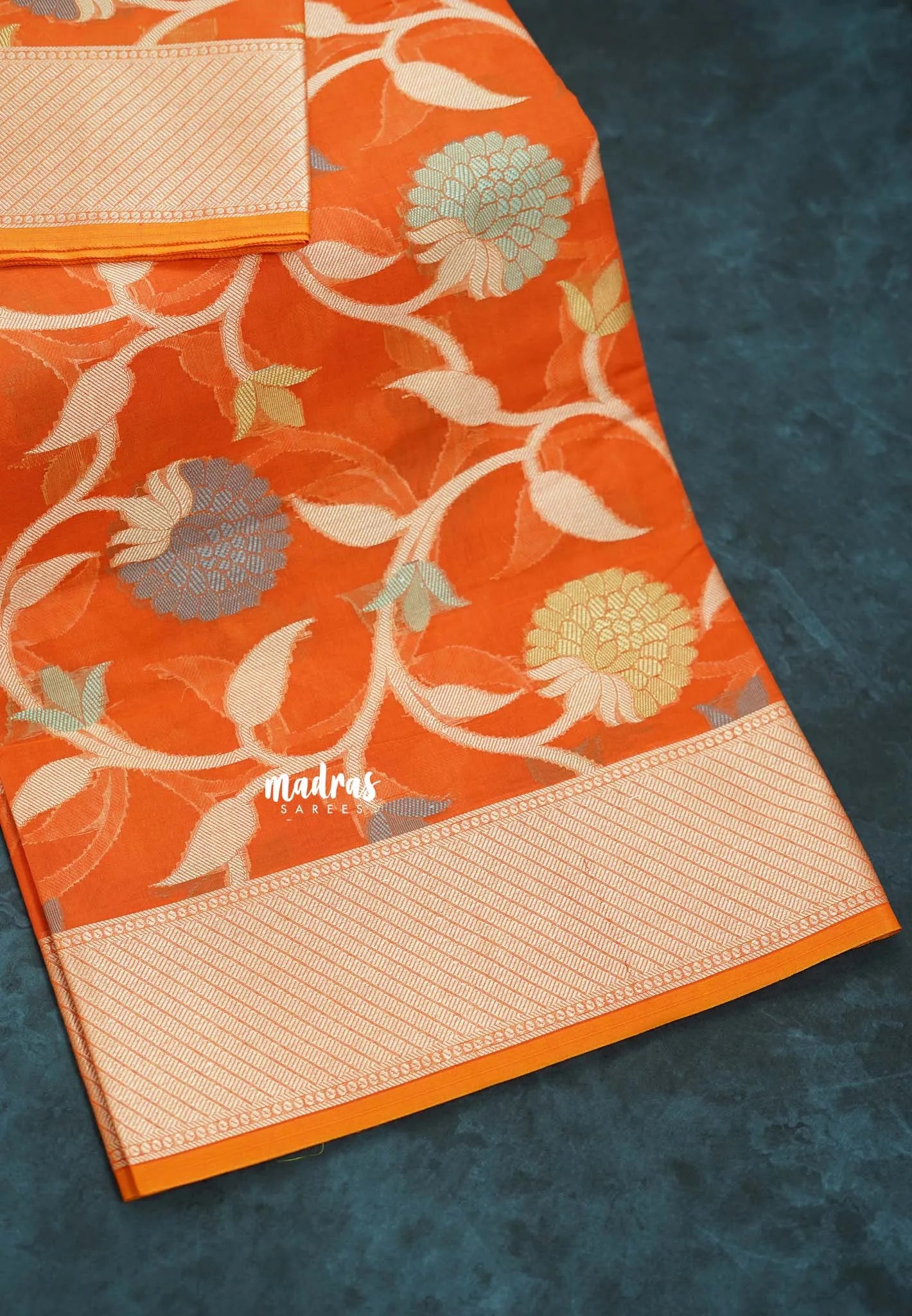 An exquisite Premium Banarasi Jamdani Cotton Saree that beautifully blends heritage craftsmanship with modern grace. Adorned with intricate floral weaving and a finely detailed zari border, this drape radiates timeless charm. Lightweight and gracefully textured, it’s perfect for festive gatherings, celebrations, and elegant day occasions.