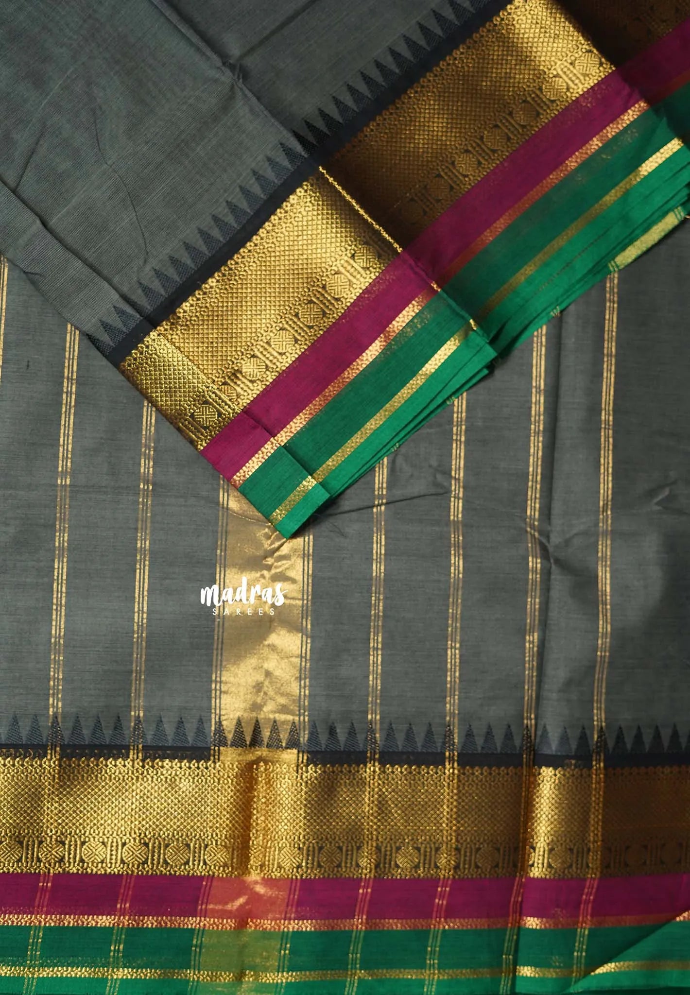 Charcoal Grey - Karthigai Silk Cotton Rudraksham and Multi Color Border - Best for Wedding Functions