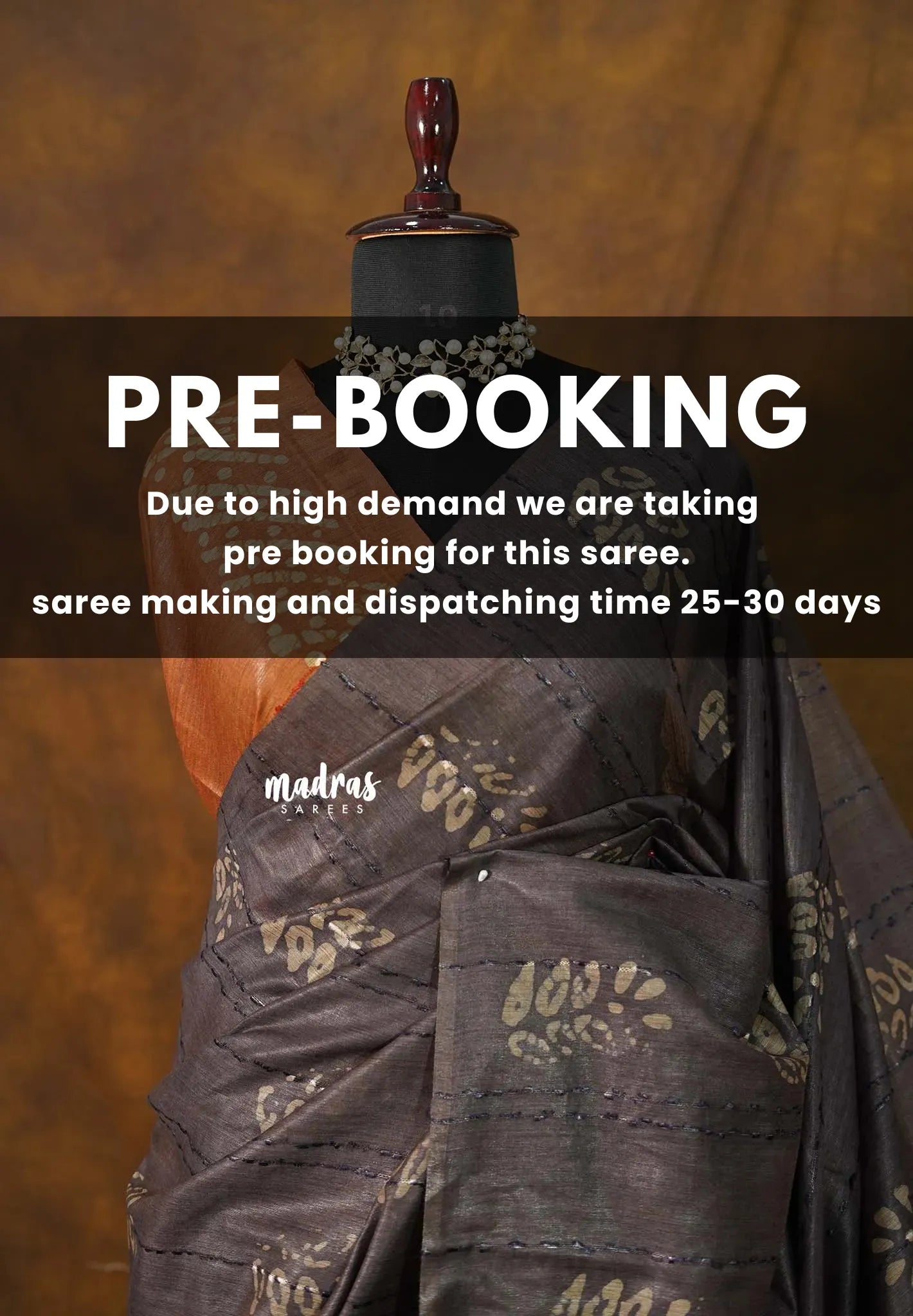 A semi-Tussar saree is made from a blend of Tussar silk and other fabrics, offering a lighter and more affordable alternative to pure Tussar silk. It has a natural sheen, soft texture, and is known for its elegant drape, making it perfect for both casual and festive occasions. Its intricate weaving and vibrant designs make it a versatile, timeless piece.