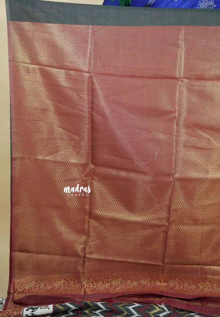 Kanchi semi Silk Saree with grand intregate pattern weaving all over the body. Semi silk sarees represent modern variations of classic silk sarees influenced by the need for luxury and comfort in silk sarees at very affordable prices.