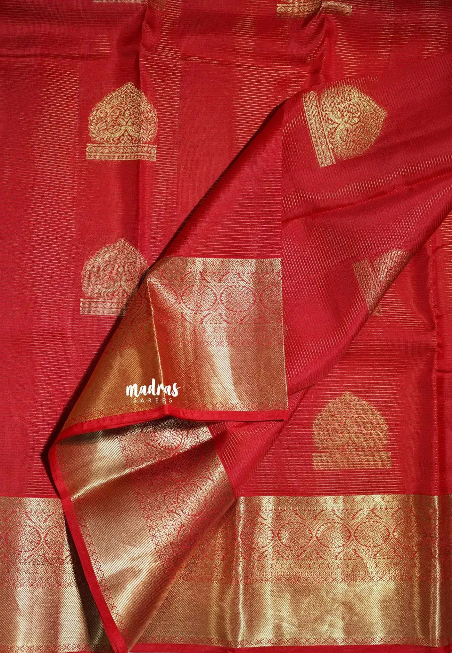Chilli Red - Kumudavalli - Pure Kanchivaram Wedding Bridal Silk Saree Vaira Oosi Zari Weaving with Peacock Buttas - Perfect for Wedding Functions