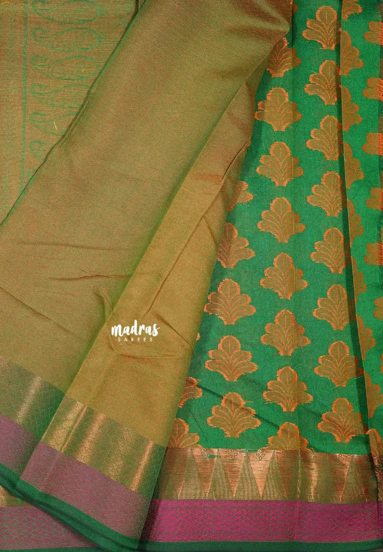 Classic Green - Maheswari - Cotton Silk with Full Weaving Buttas - Best for Small Functions