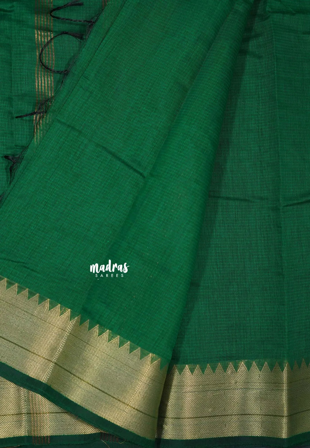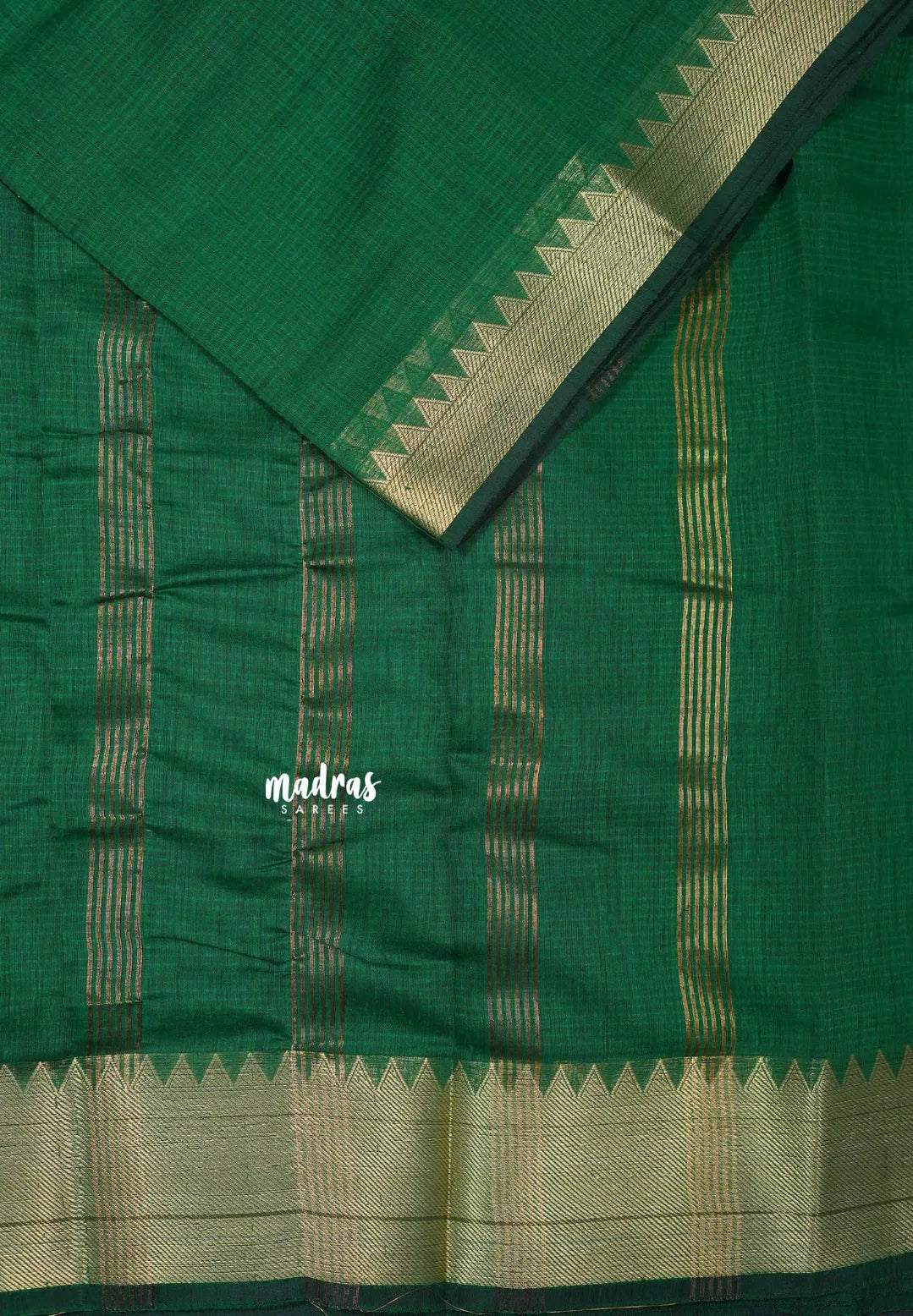 Classic Green - Maheswari - lightweigt cotton silk with rich tissue border  - Perfect for Small Functions