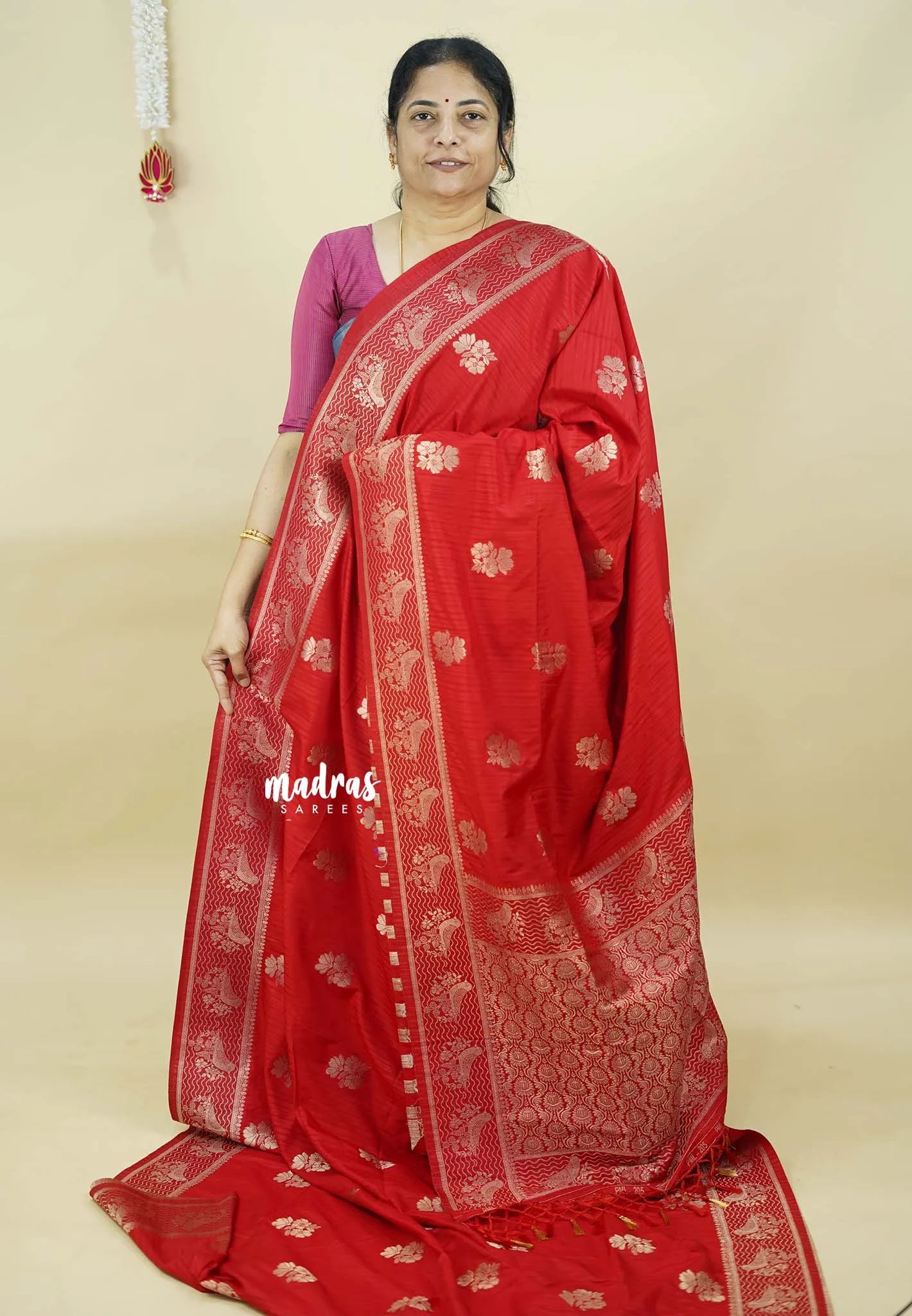 Classic Red - Madhuram - Soft Matka silk with Grooves Body with Bird weaving Border