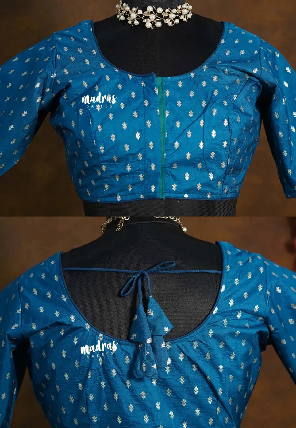 Cobalt Blue - Zari Butta Silk Cotton Readymade Blouse