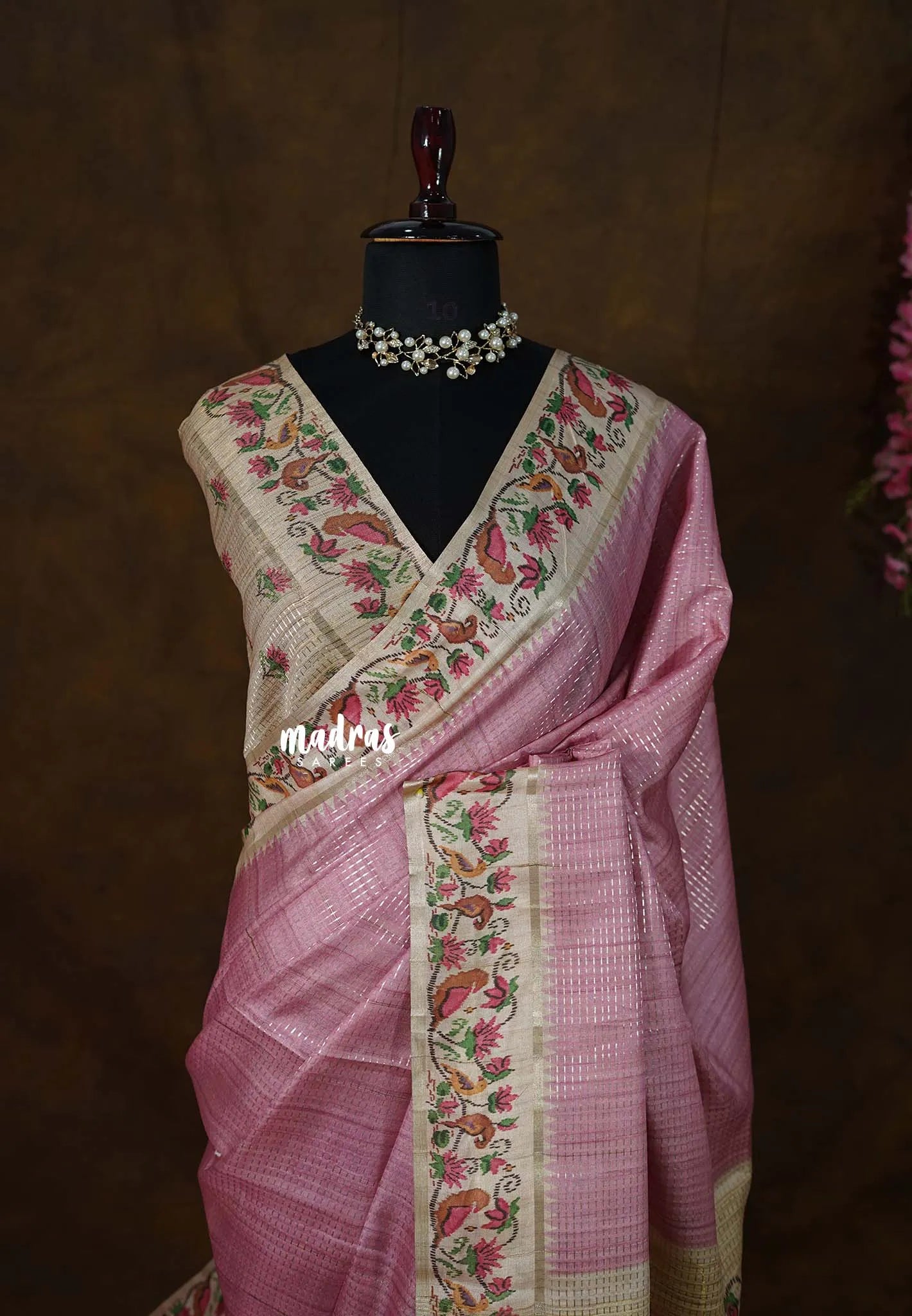 This elegant Roopa semi tussar saree exudes a graceful charm, ideal for festive and formal occasions. The luxurious fabric drapes beautifully, offering both comfort and sophistication. Its refined finish and intricate craftsmanship highlight timeless tradition with a modern touch. This saree features a high-quality one-side print, giving it a refined, premium finish that stands out effortlessly