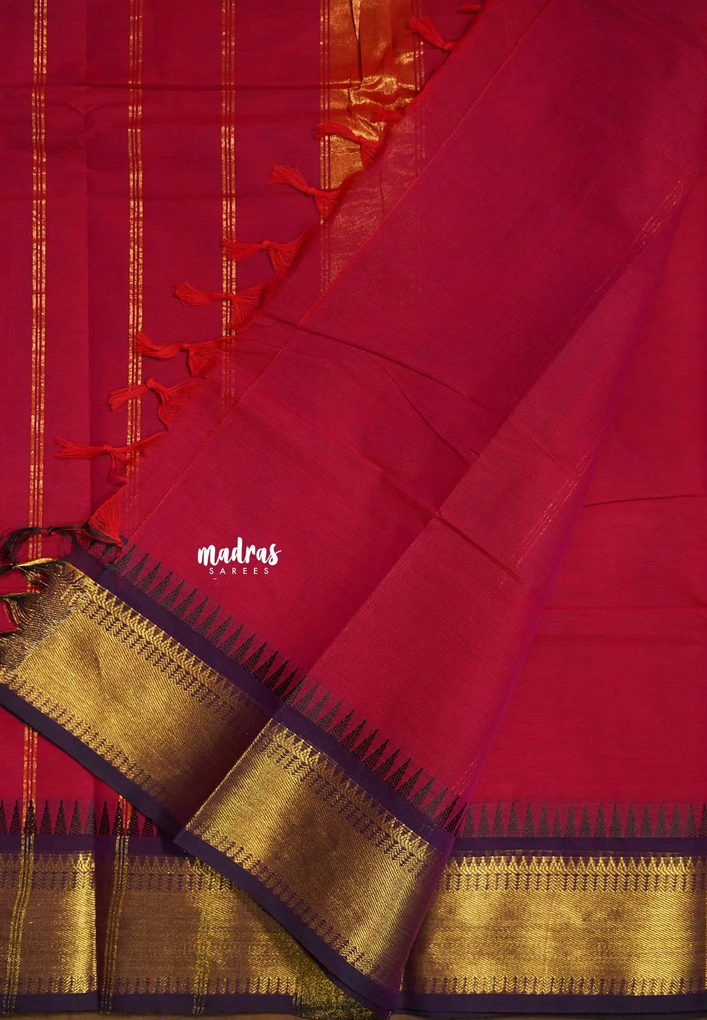 Crimson Red - Karthigai silk cotton getti zari with small temple border - Best for Wedding Functions