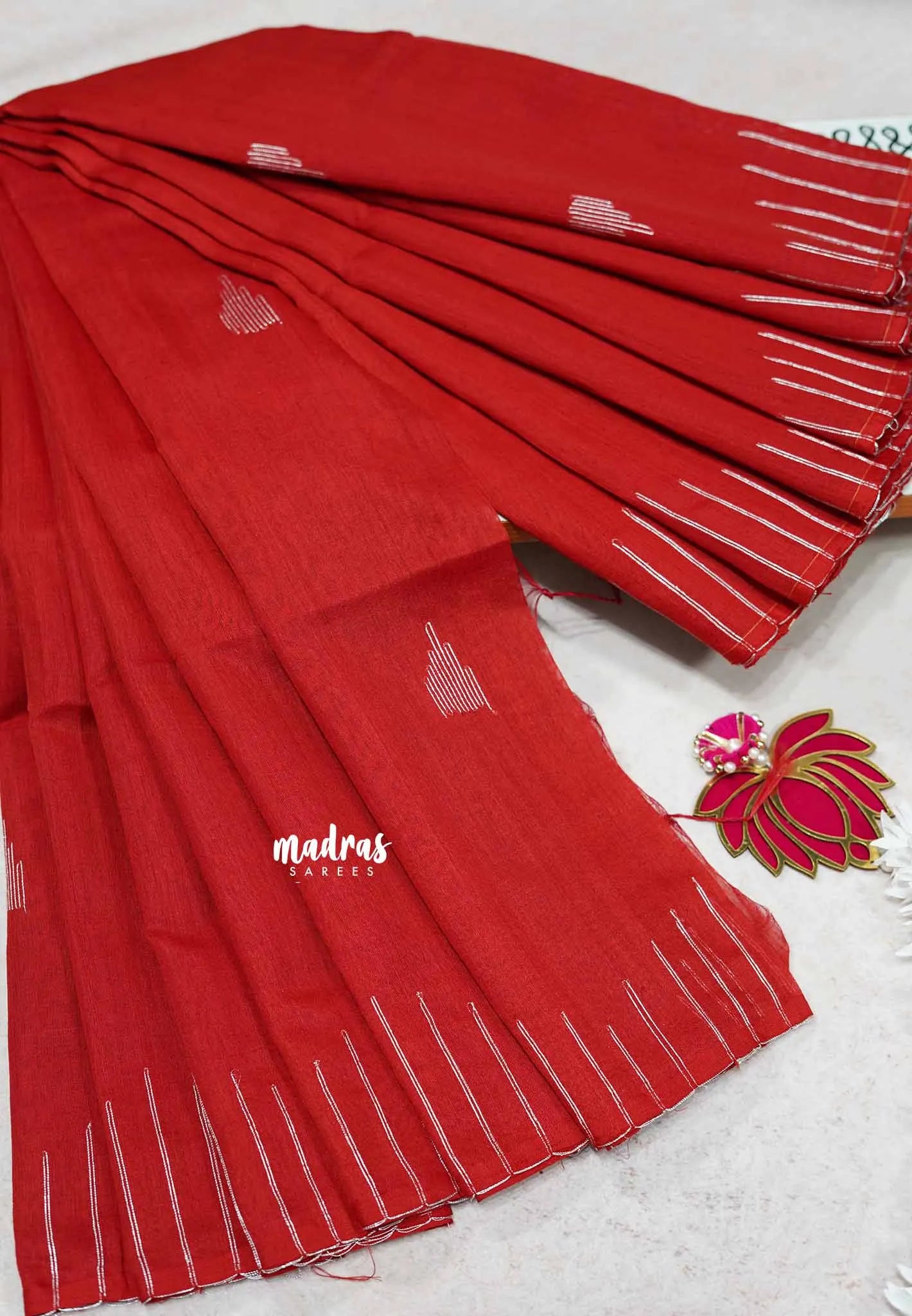 With its lightweight and smooth texture, Maheswari Cotton silk with silver thread temple weaving saree is perfect as corporate wear, providing both style and comfort.