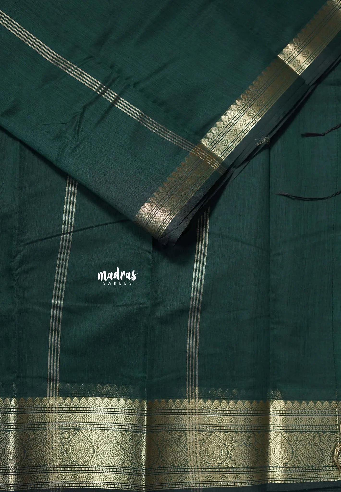 Dark Green - Maheswari - Lightweight cotton silk saree with traditional border  - Perfect for Small Functions