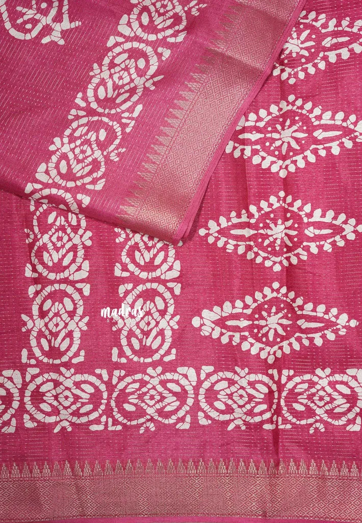 Dark Rose Pink - Light weight Vasundra Printed Silk with Kantha Stich Weaving with Zari Border - Best for Small Functions