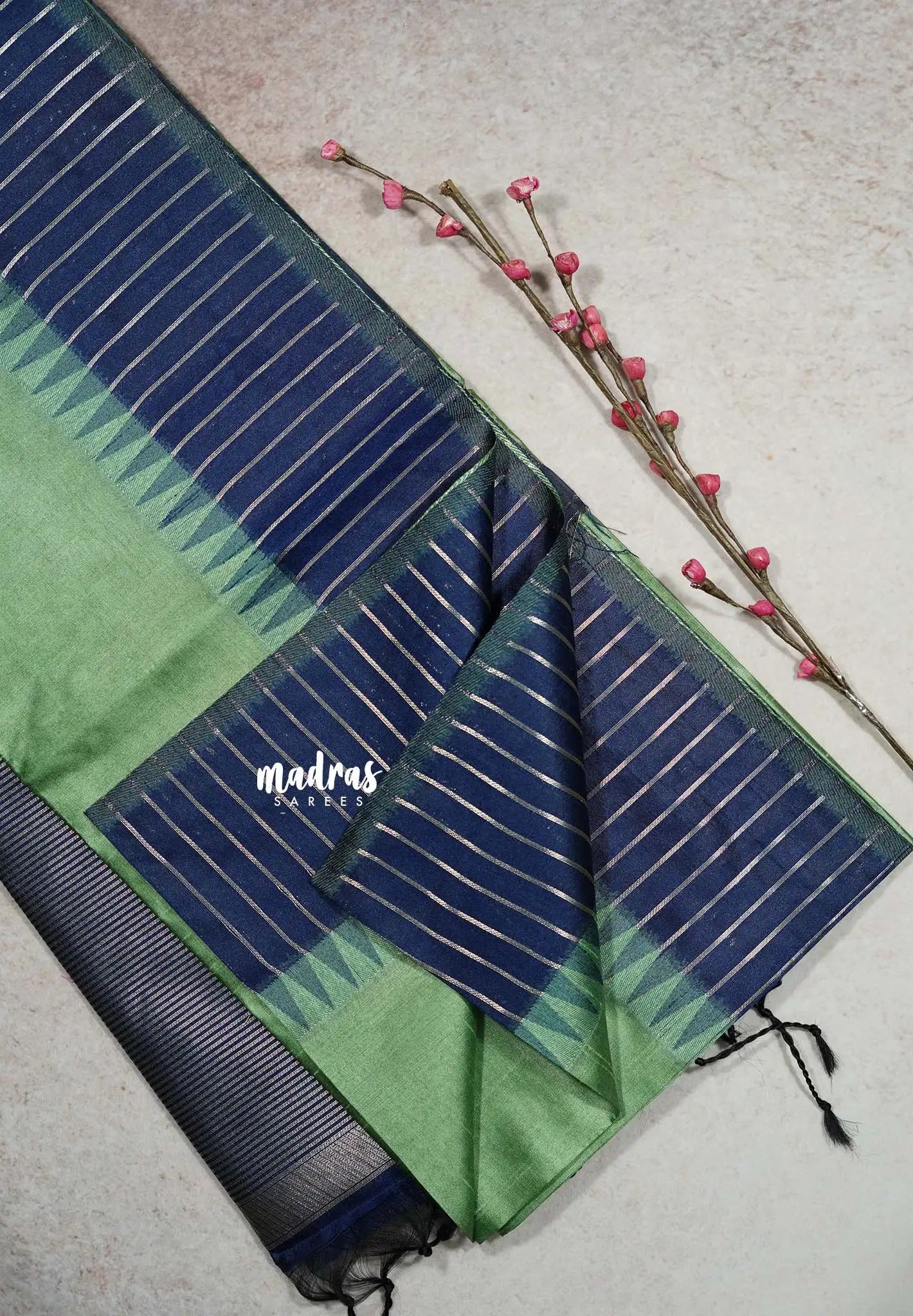 This Roopa Chappa Tussar saree is woven with a lustrous finish that beautifully highlights its intricate detailing. . Lightweight yet rich in appearance, it drapes gracefully, making it perfect for both festive and formal occasions.