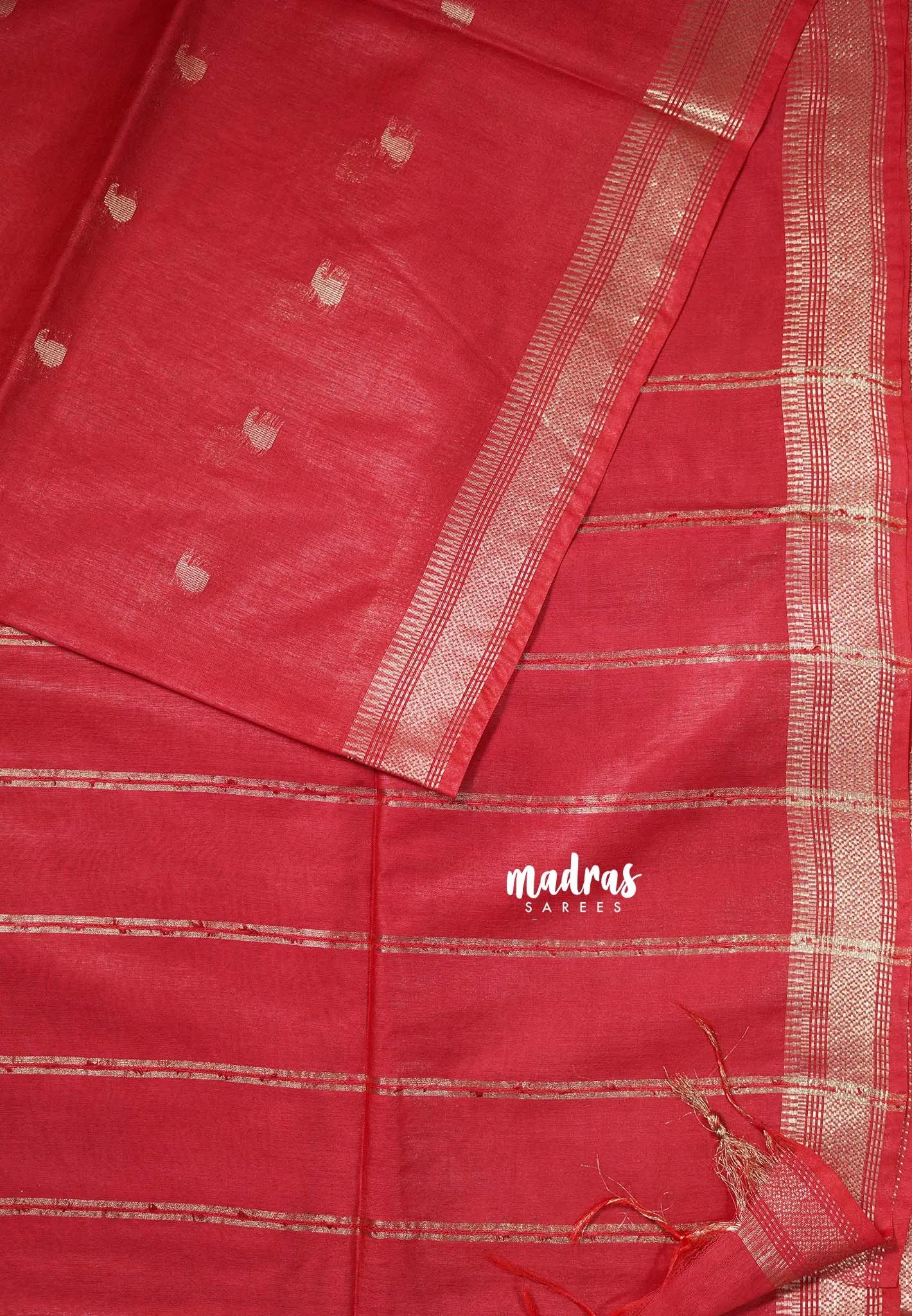 Dark Red - Khadi Silk Saree Mangalgiri Border with Buttas - Best for Simple Funtions