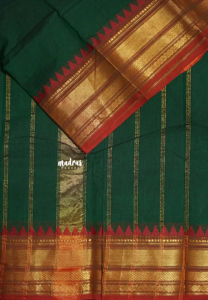 Deep Green - Karthigai Silk Cotton Bavanji with Temple Border - Best for Wedding Functions