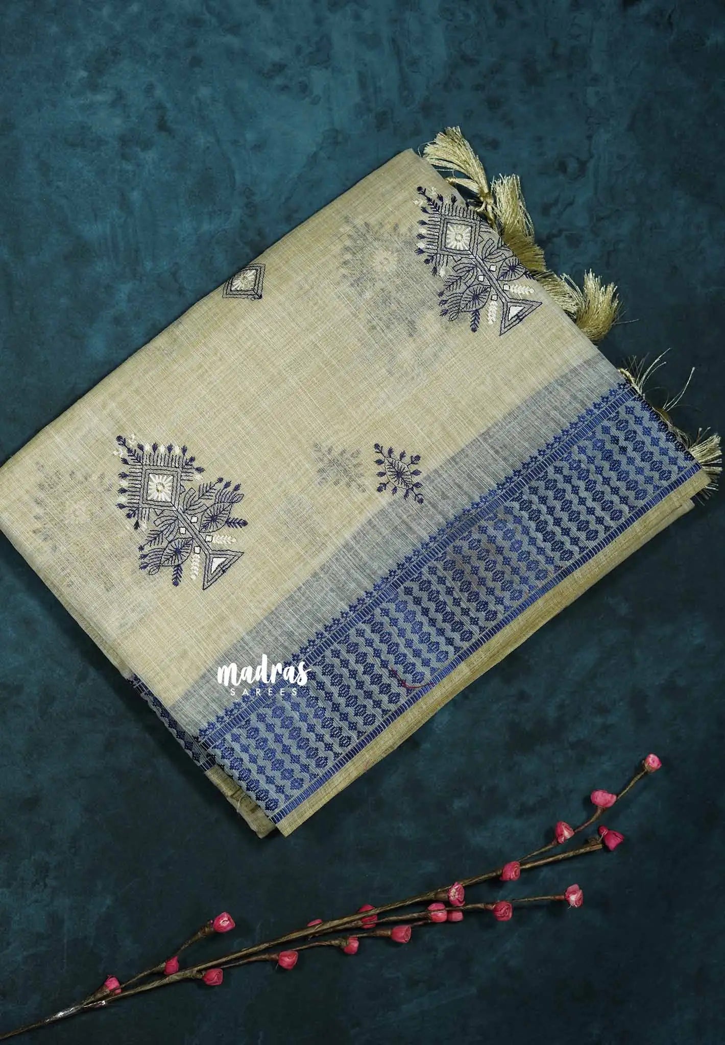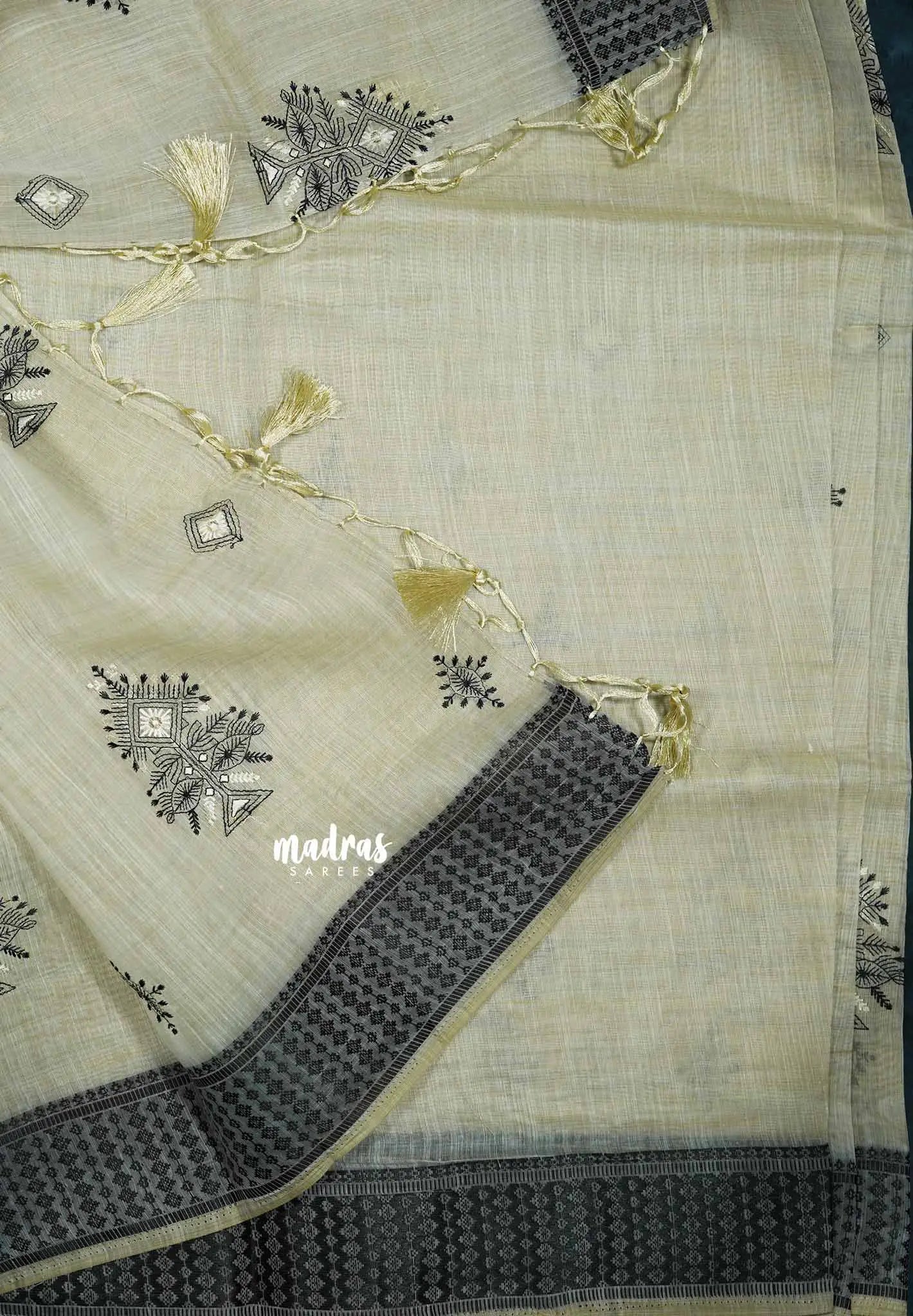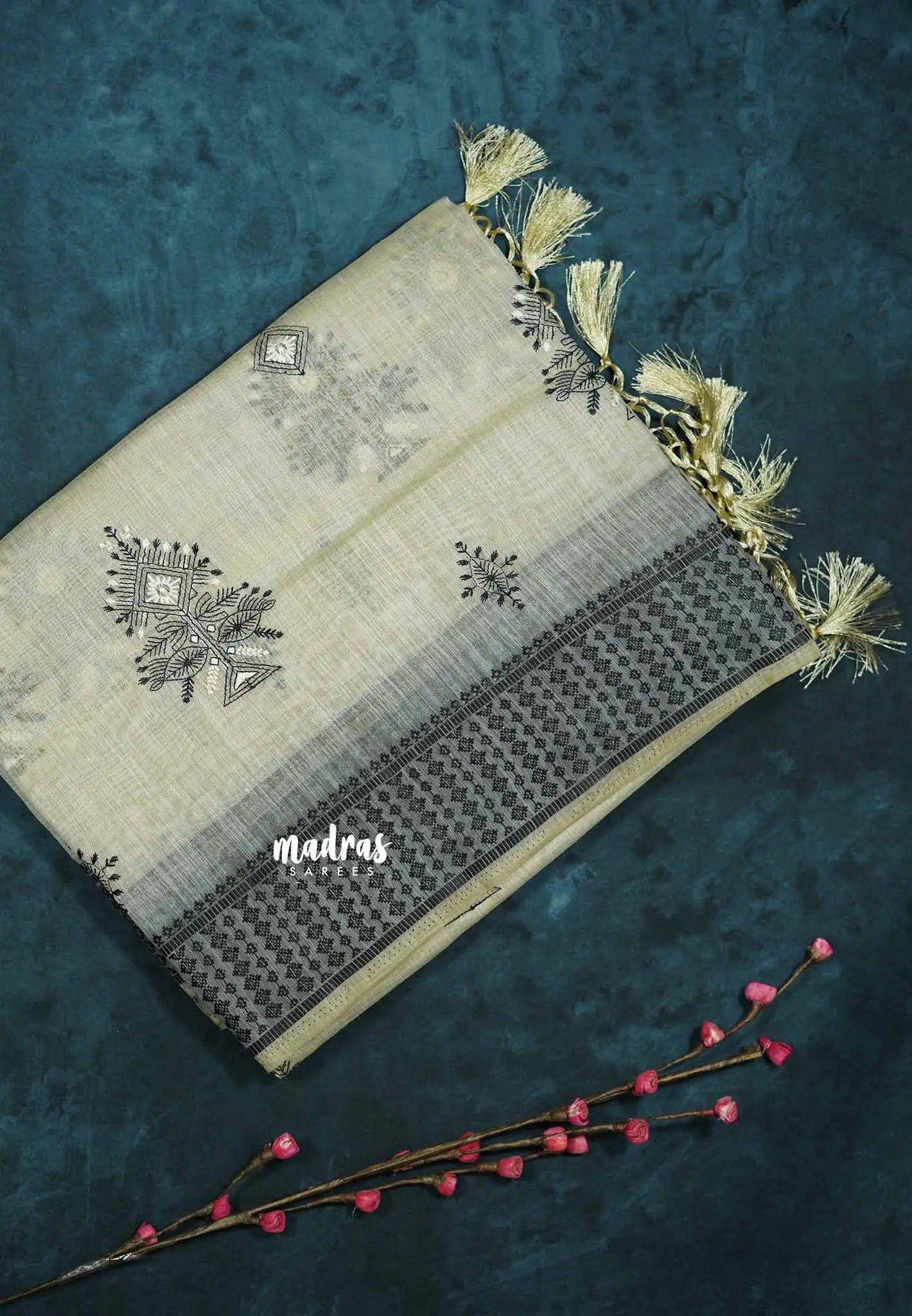 Design 3 - Halfwhite Haasini - Bamboo cotton silk with warli embroidery