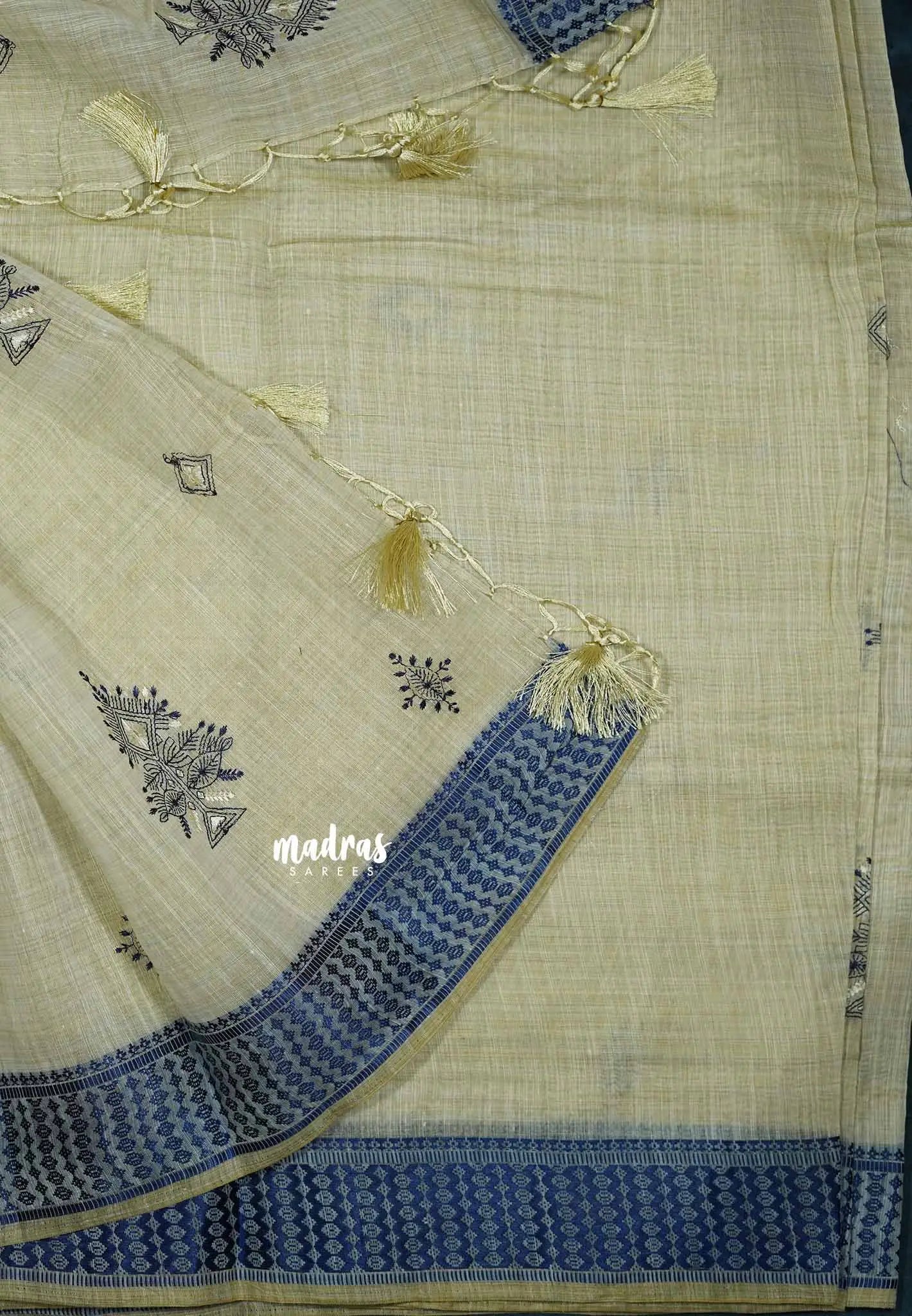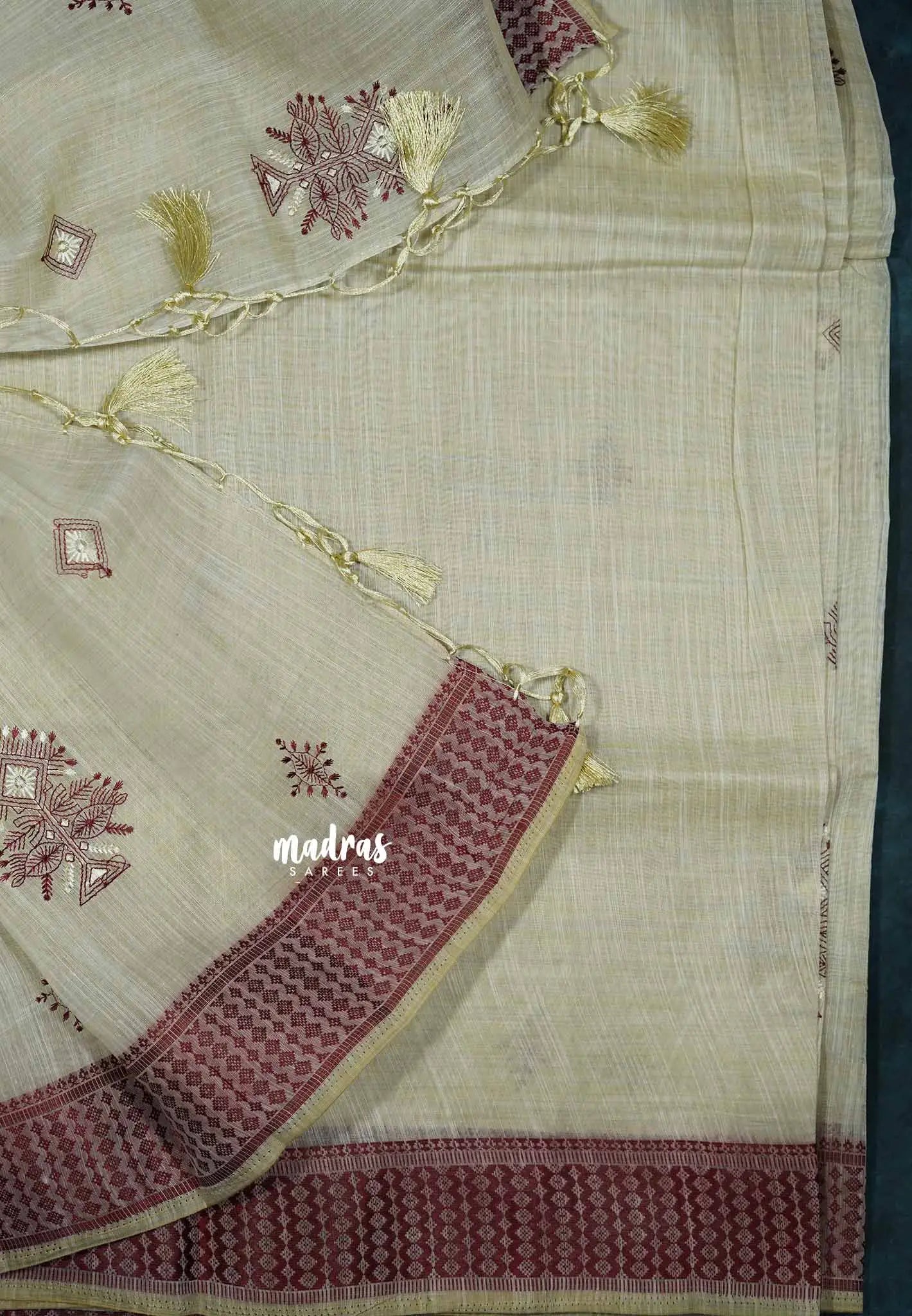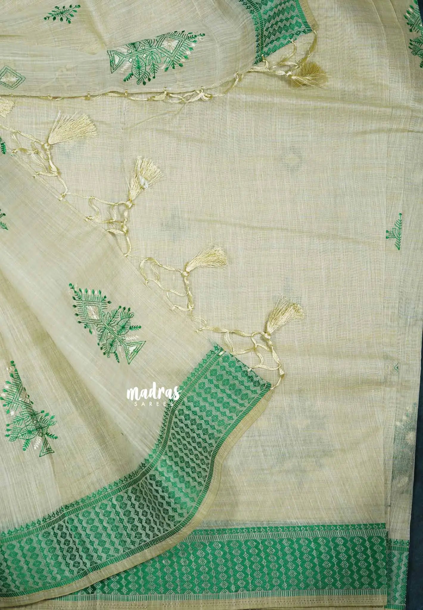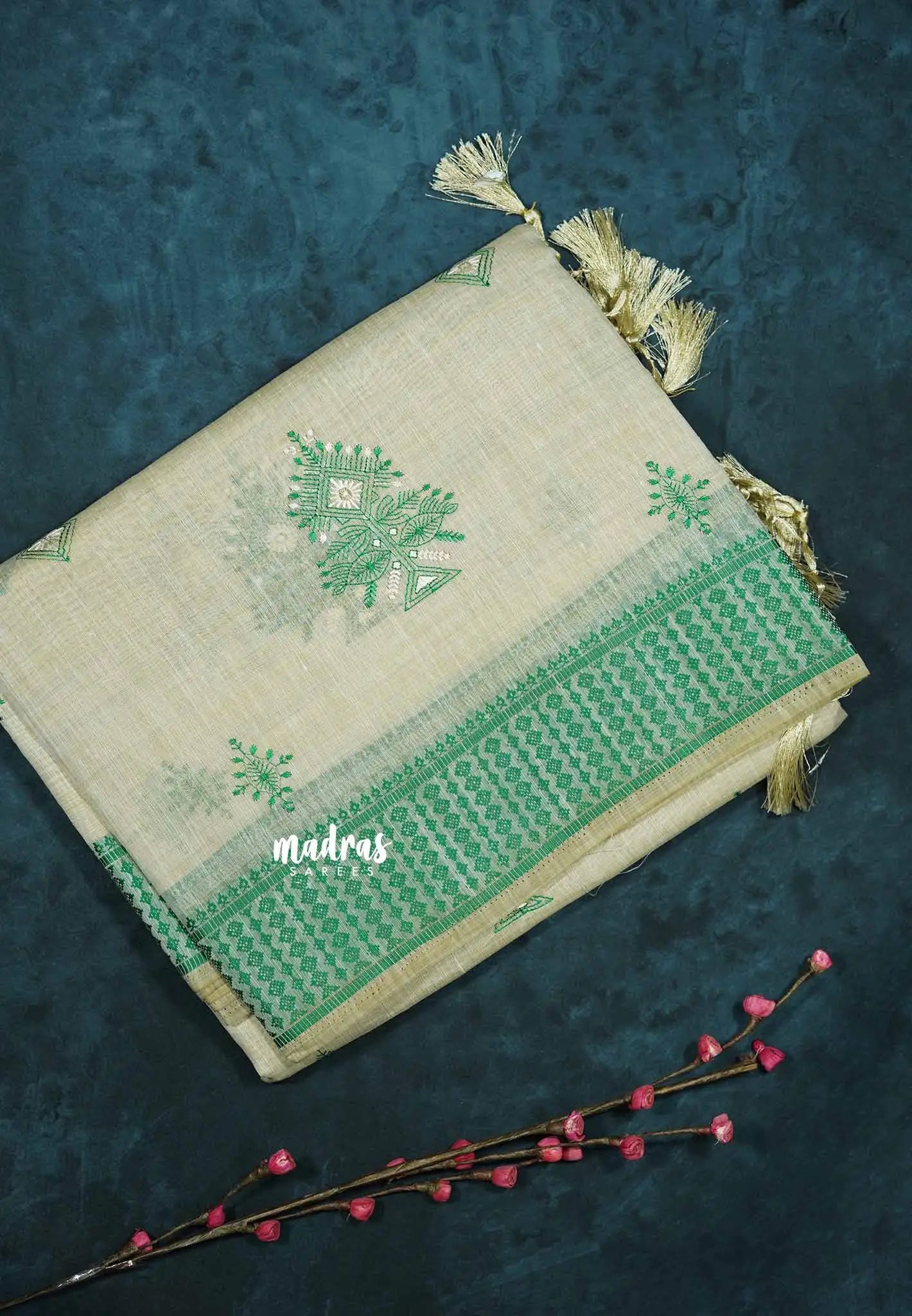Design 3 - Halfwhite Haasini - Bamboo cotton silk with warli embroidery