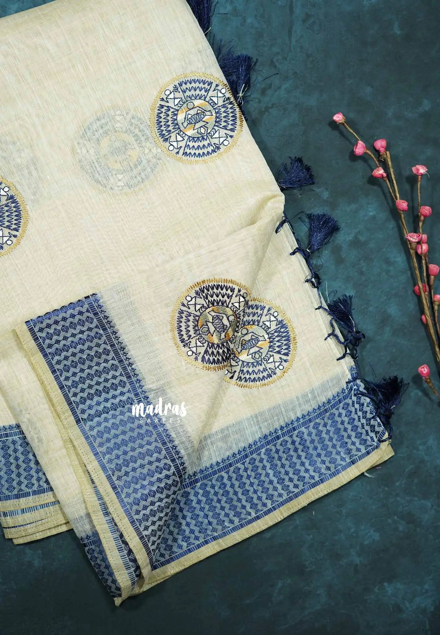 Design 4 - Halfwhite Haasini - Bamboo cotton silk with warli embroidery