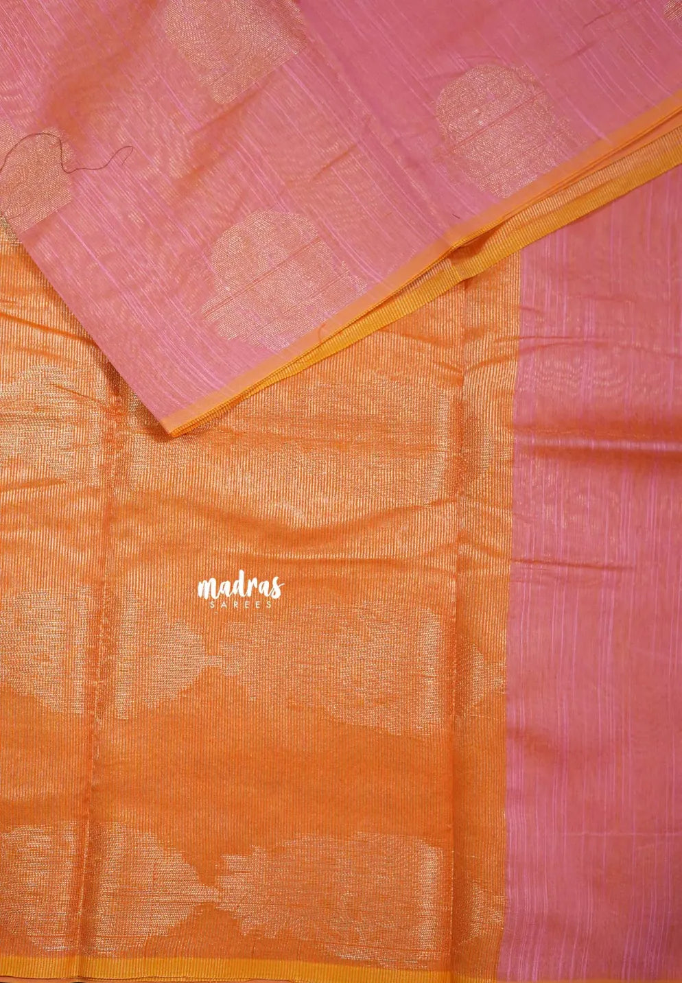 Dual Shade Blossom Pink - Soft jute banarasi with sculpture motives - Best for Wedding Functions