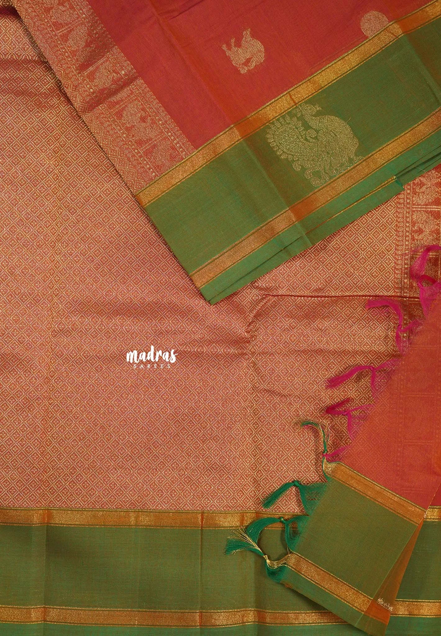 Dual Shade Peach orange - Korvai silk cotton saree with Rettapetta Border - Best for Festive Wear