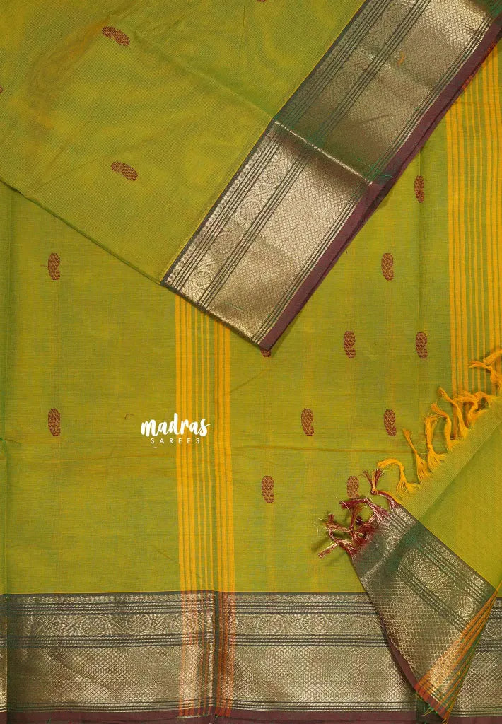 Dual shade Chutney Green - Karthigai silk cotton Bavanji border with buttas