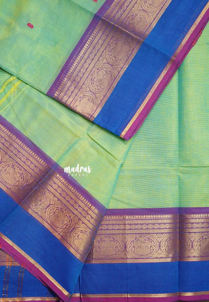 Dual Shade Green - Karthigai silk cotton Round Peacock and Skirt Border with buttas - Perfect for Festive Wear