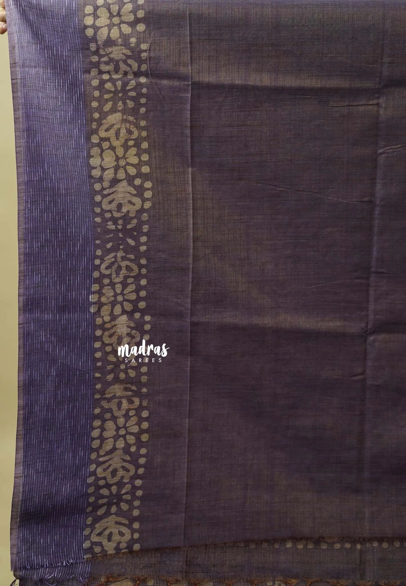 Dual Shade Midnight Plum- Soft Tissue Silk with Bandini Block Prints and 3D weaving Border